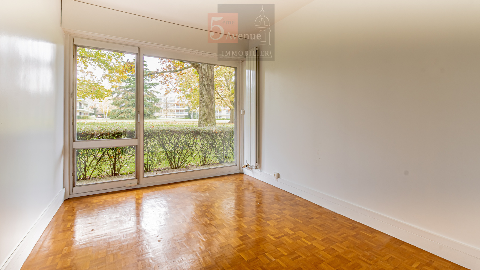L'entrée est spacieuse avec un espace dressing sur mesure, dans la continuité un vaste séjour très lumineux avec ces nombreuses baies vitrées donnant accès à la terrasse tout le long de l’appartement, et une superbe vue sur le parc.