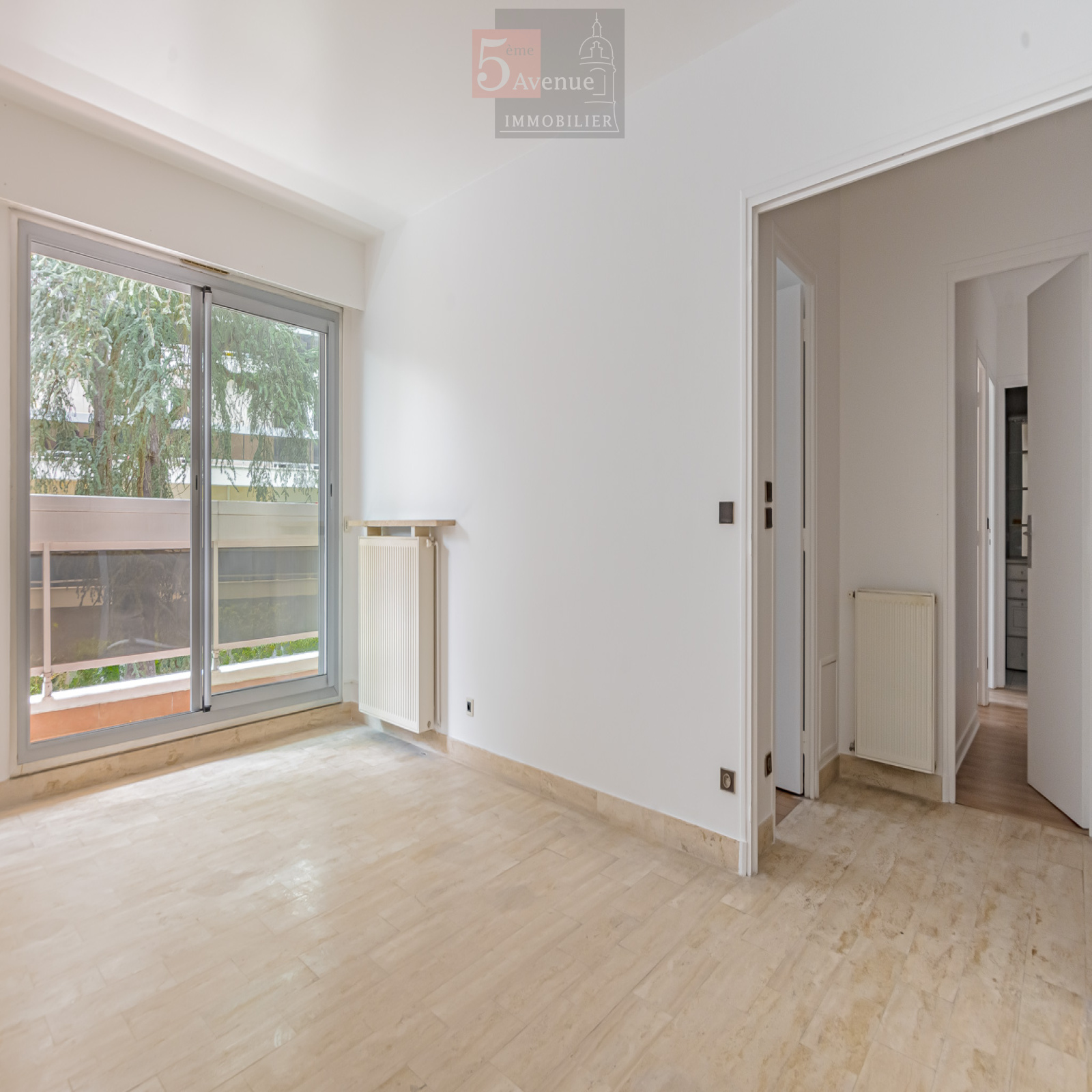 Entrée avec placards distribuant un double séjour exposé ouest avec grand balcon, une cuisine équipée individuelle.