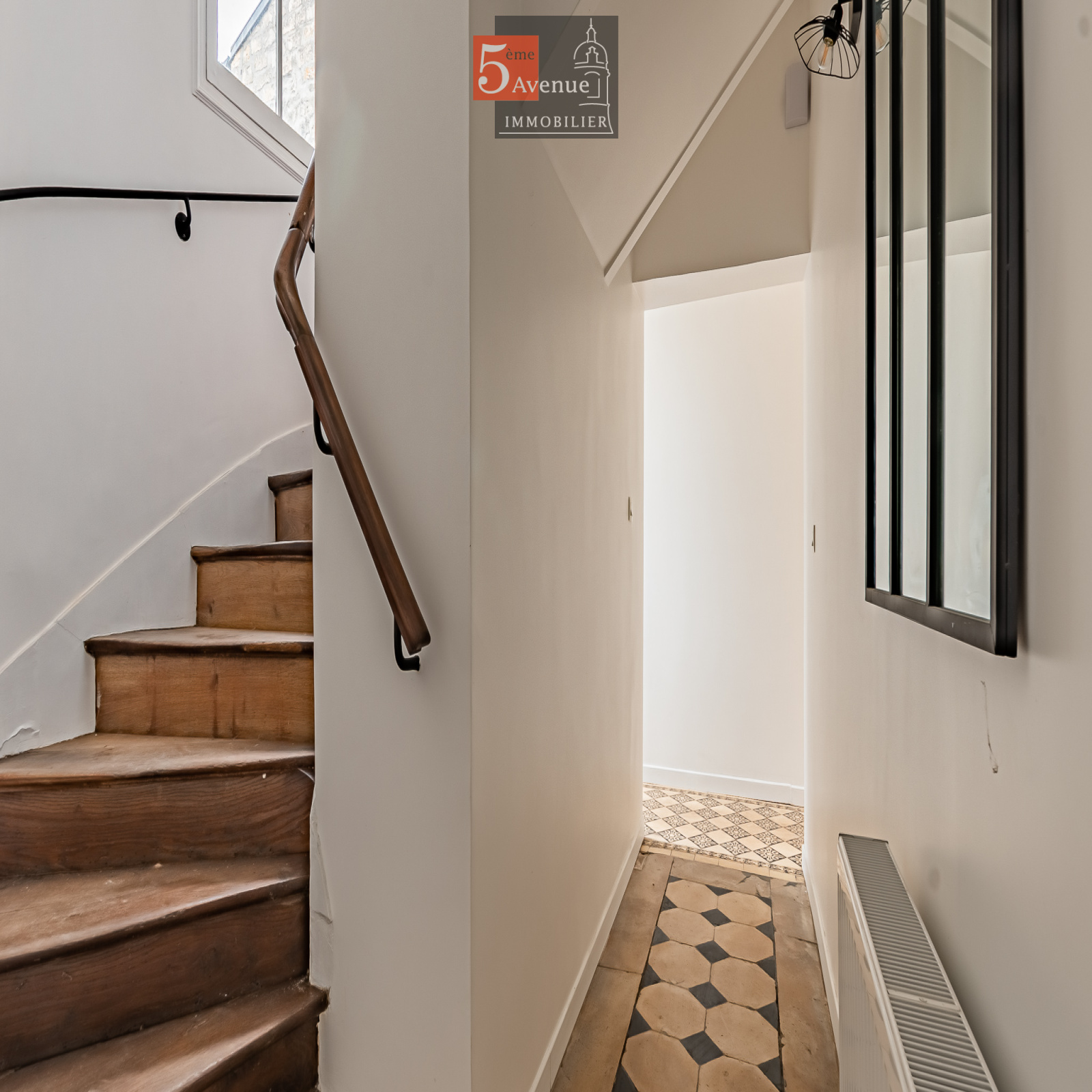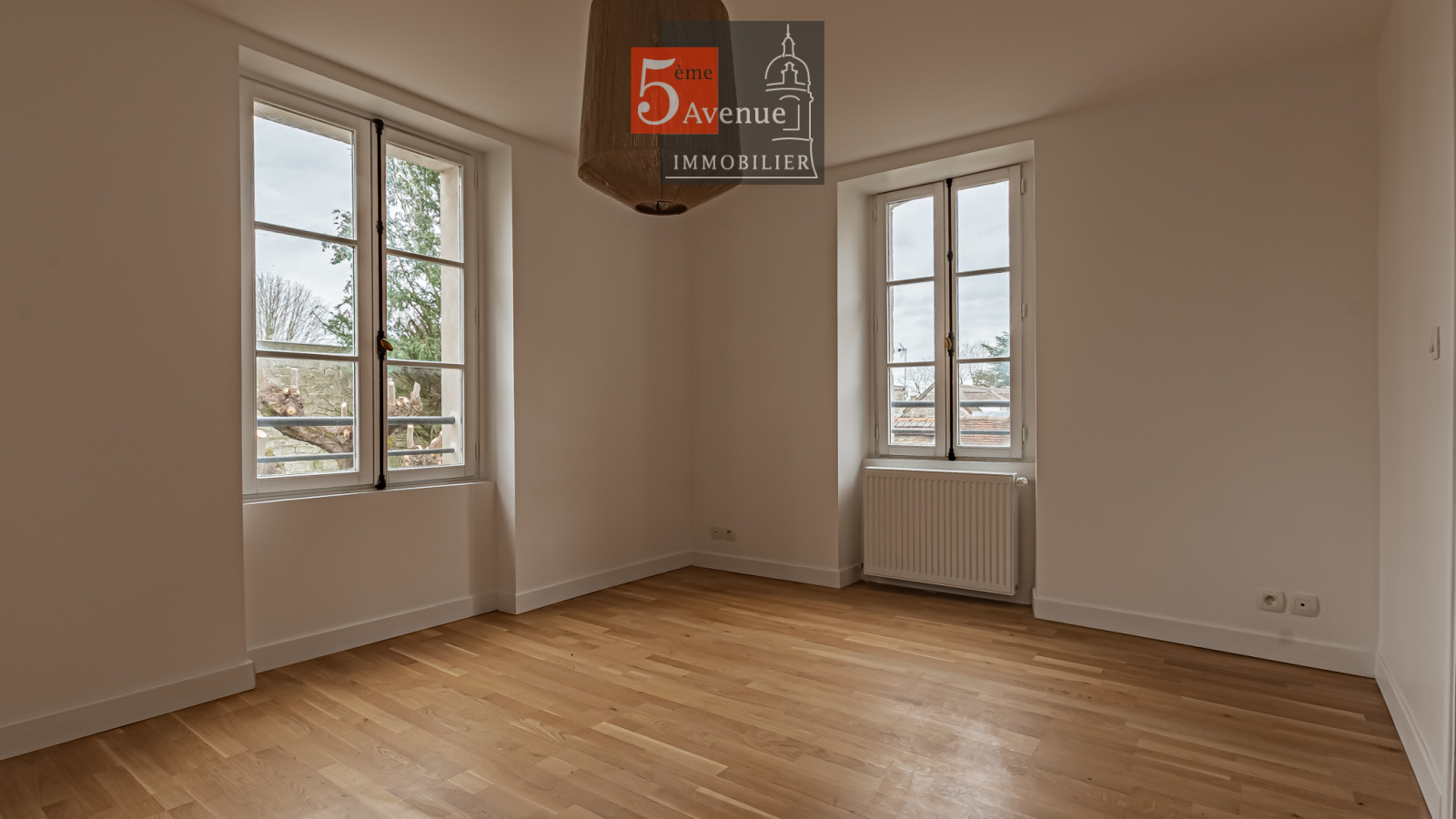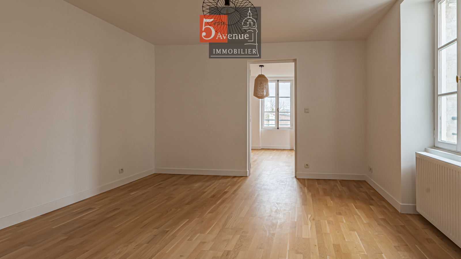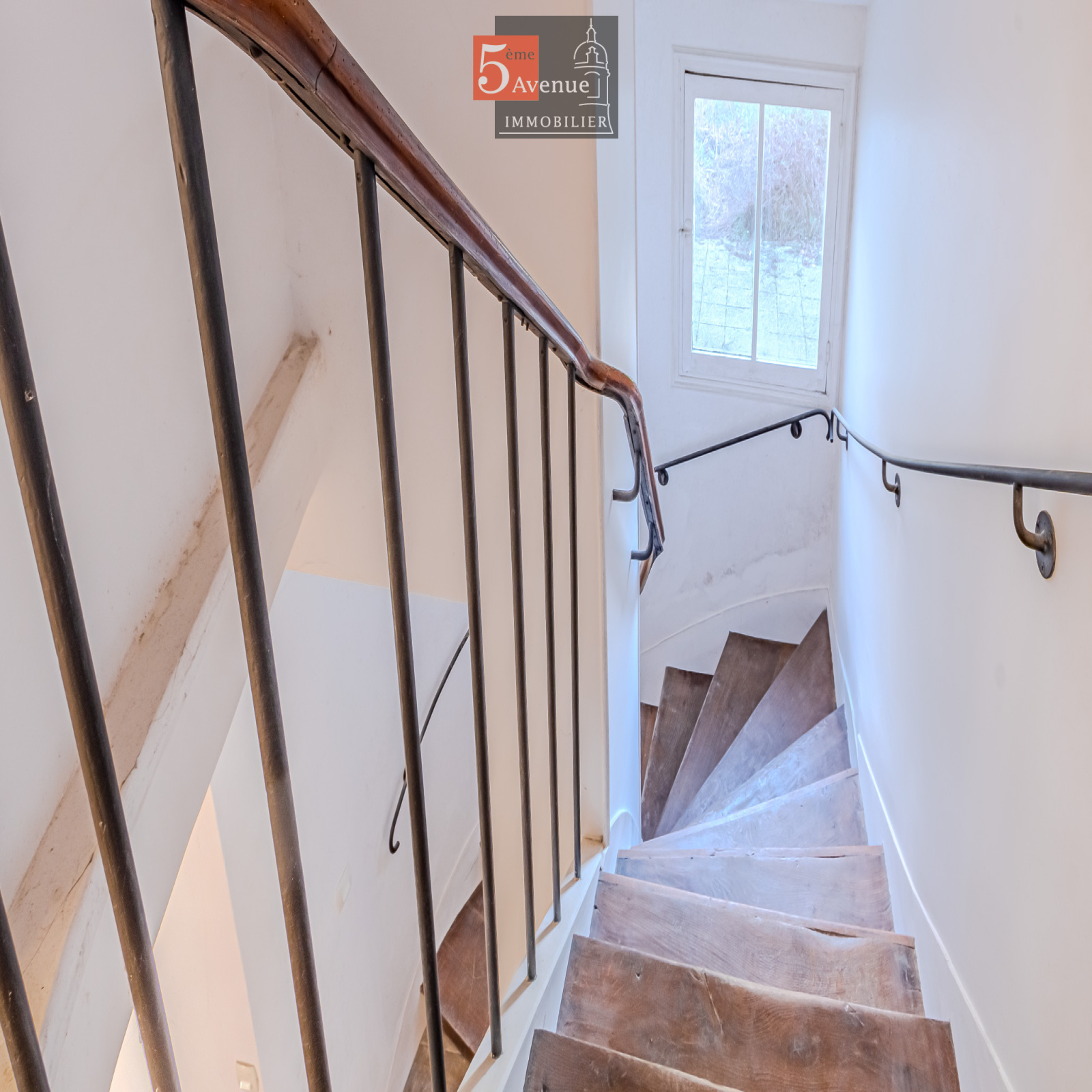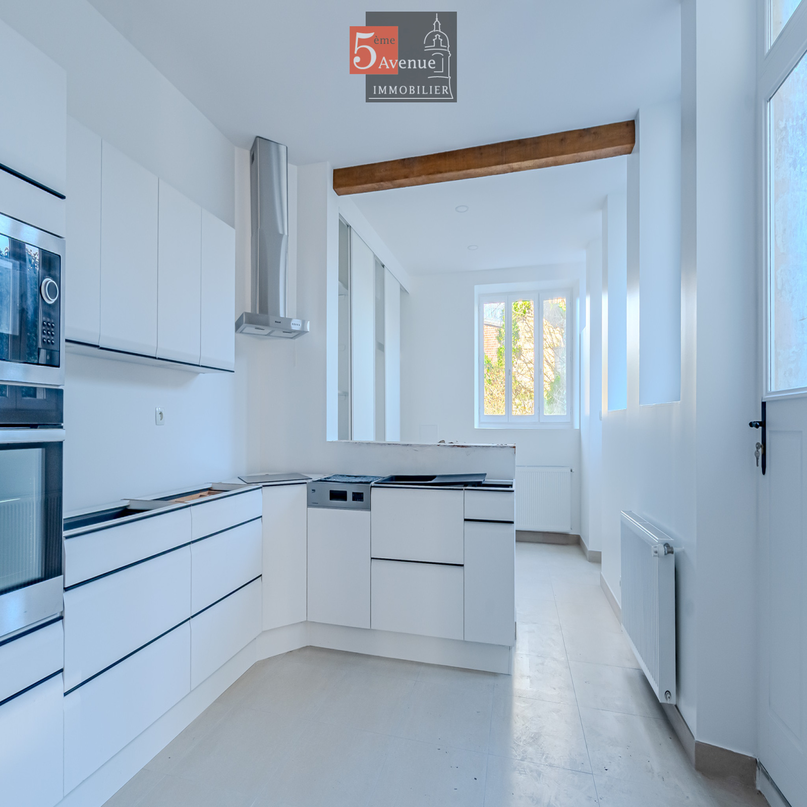 Le rez-de-chaussée se compose d’un double séjour lumineux avec cheminée centrale. La cuisine indépendante, entièrement équipée, offre un accès direct au jardin.