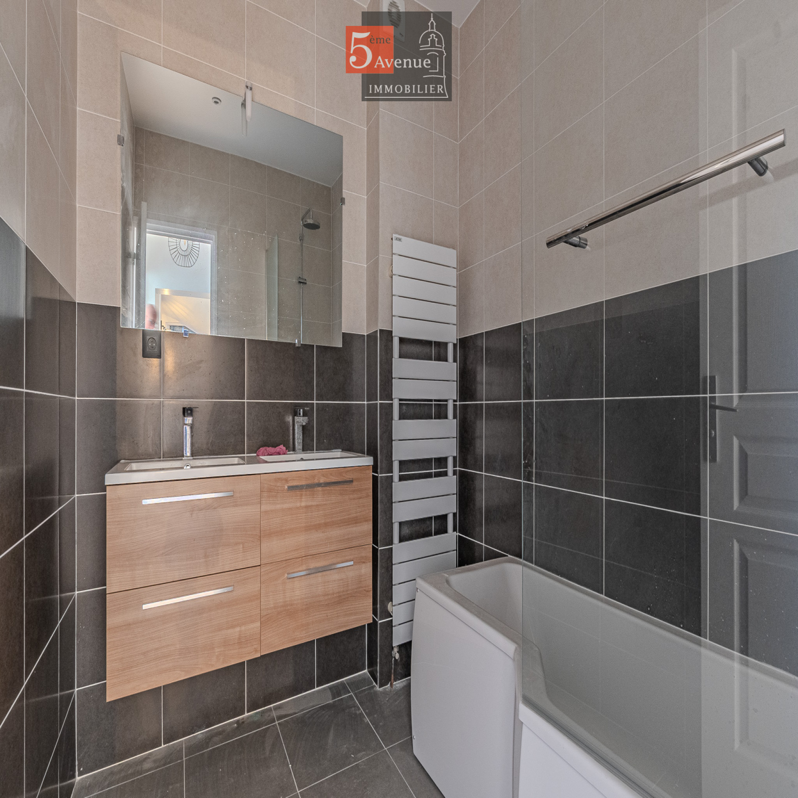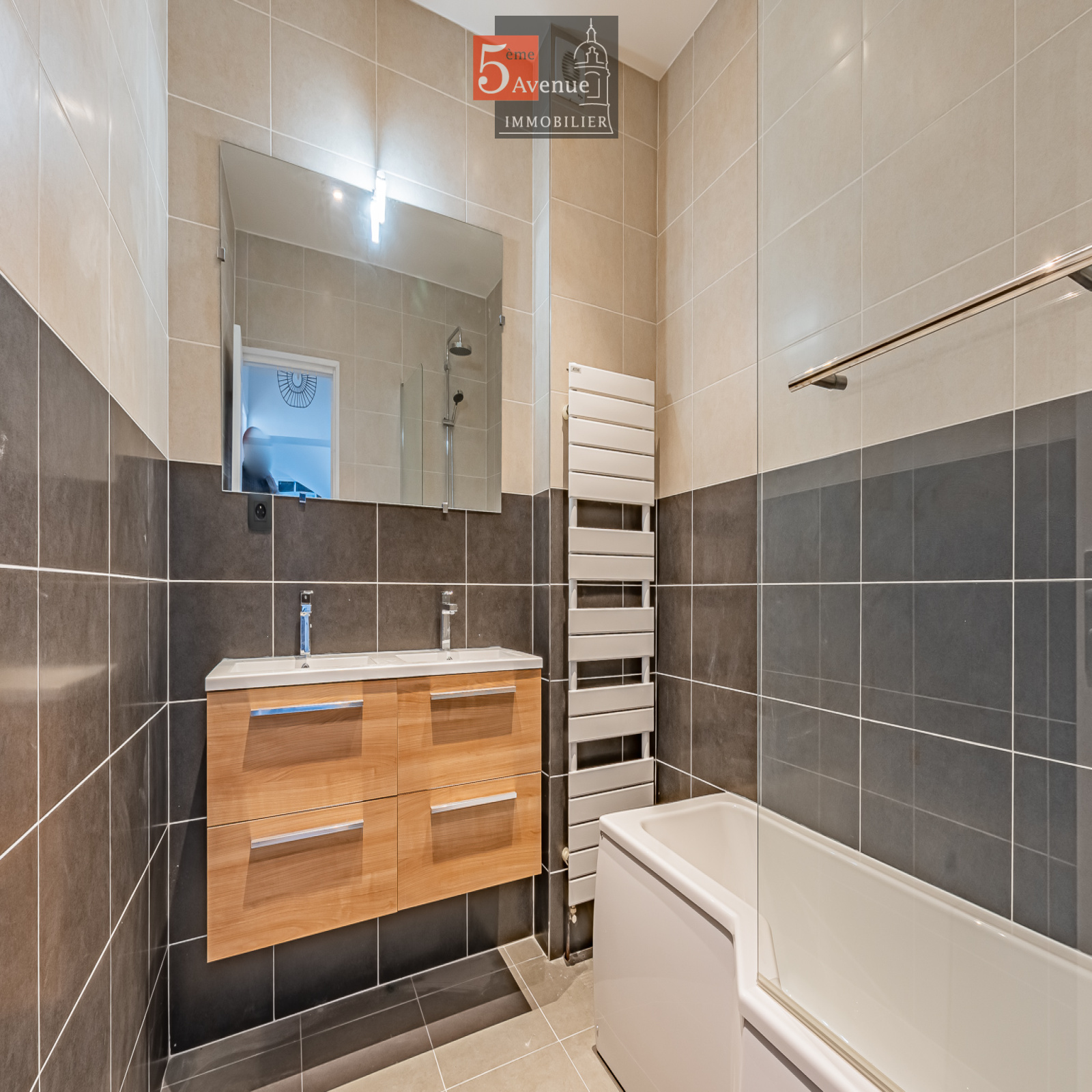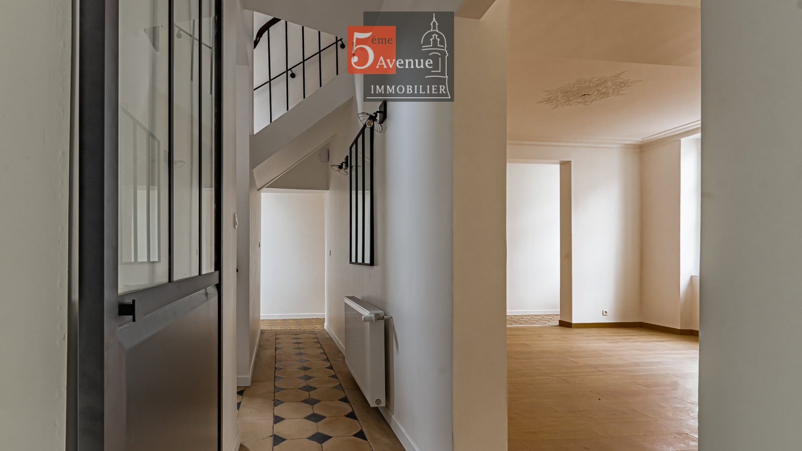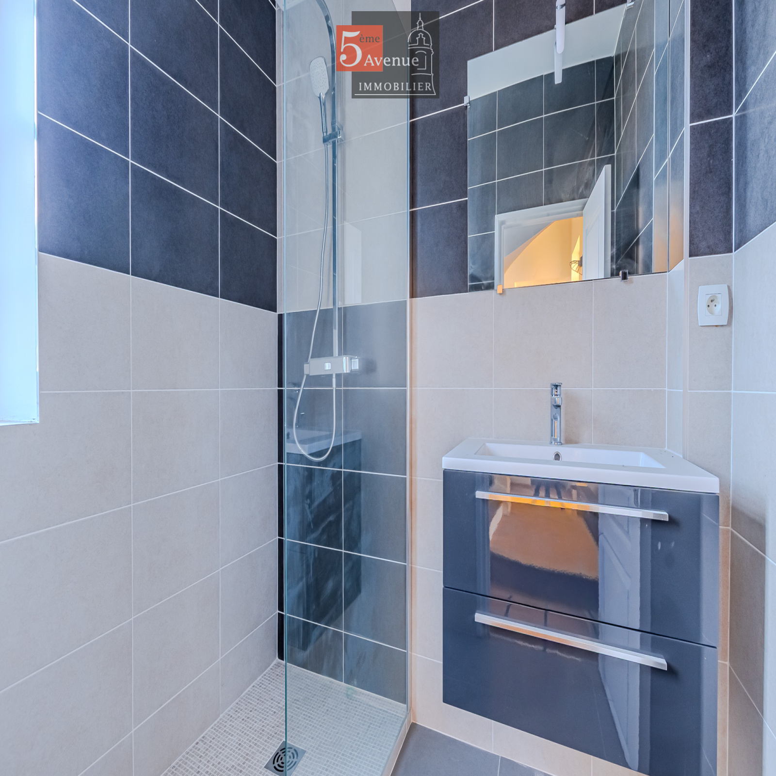 Le rez-de-chaussée se compose d’un double séjour lumineux avec cheminée centrale. La cuisine indépendante, entièrement équipée, offre un accès direct au jardin.