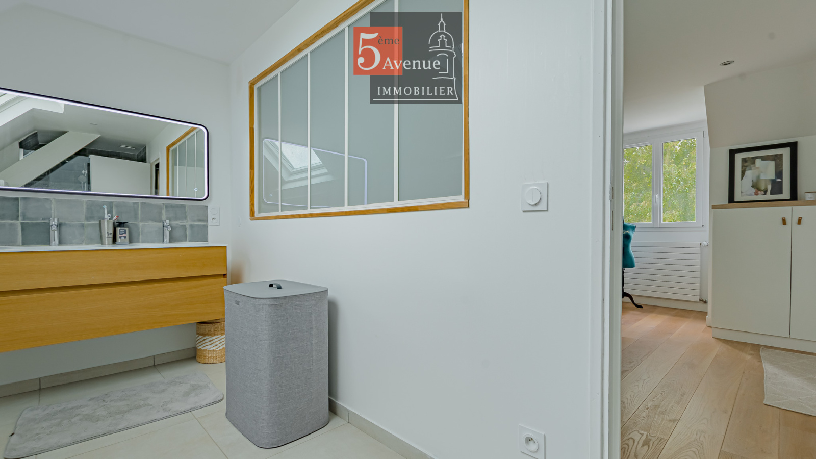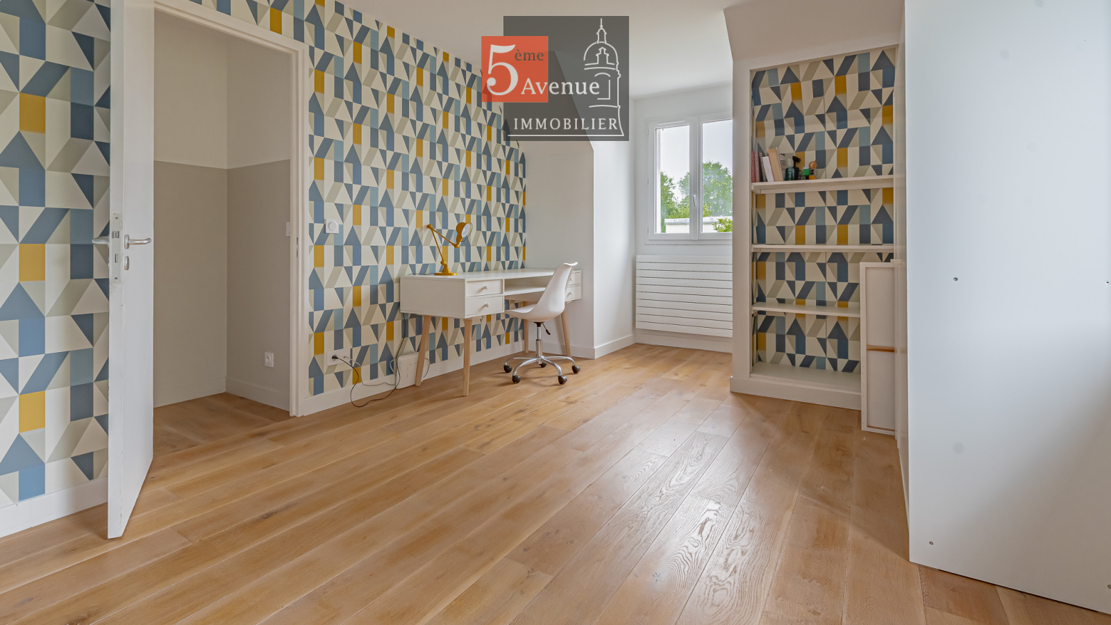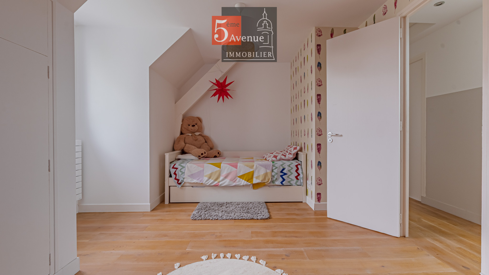 À l’étage, un palier dessert deux grandes chambres, une salle de bains, ainsi qu’une superbe suite parentale avec dressing et salle de bains privative, garantissant intimité et confort.