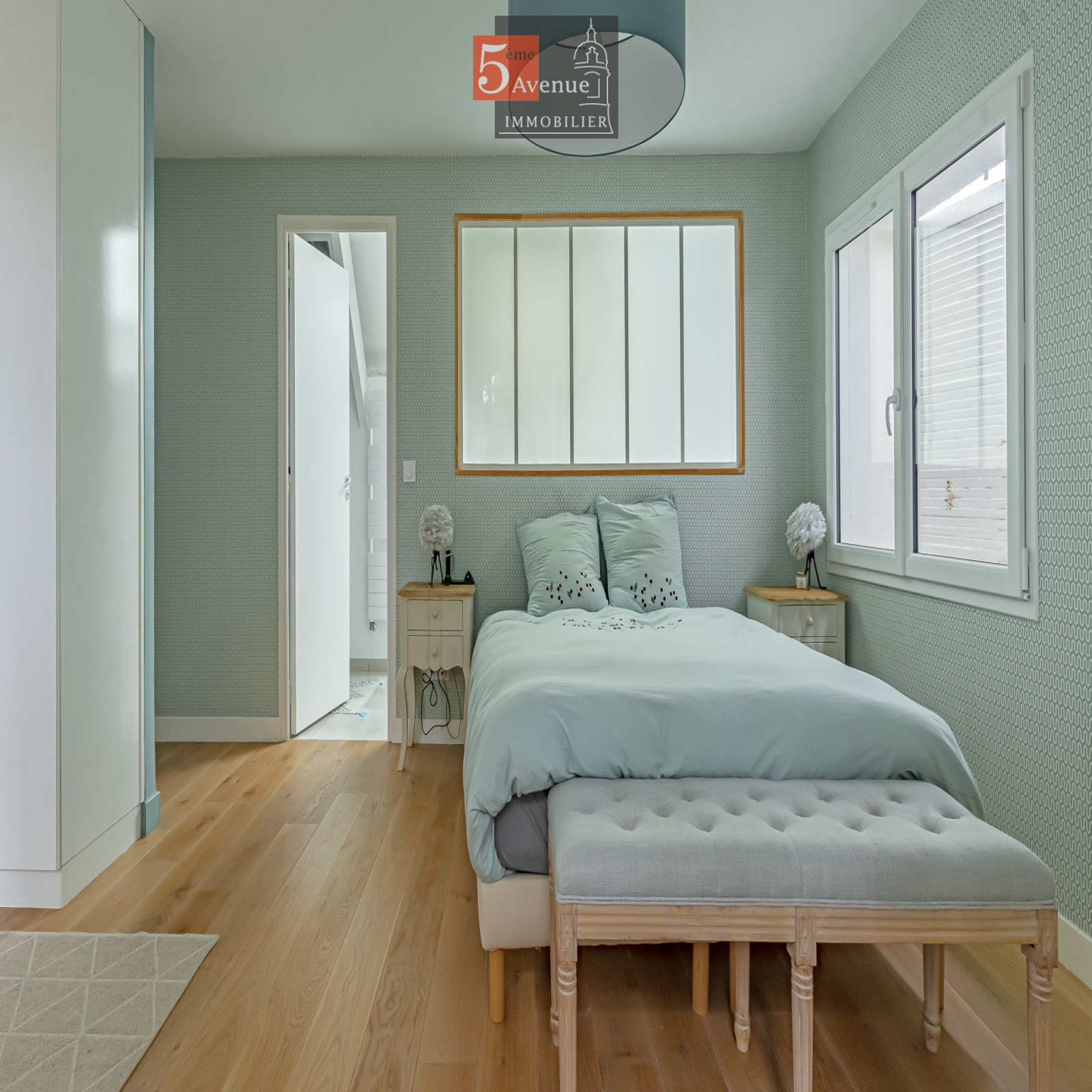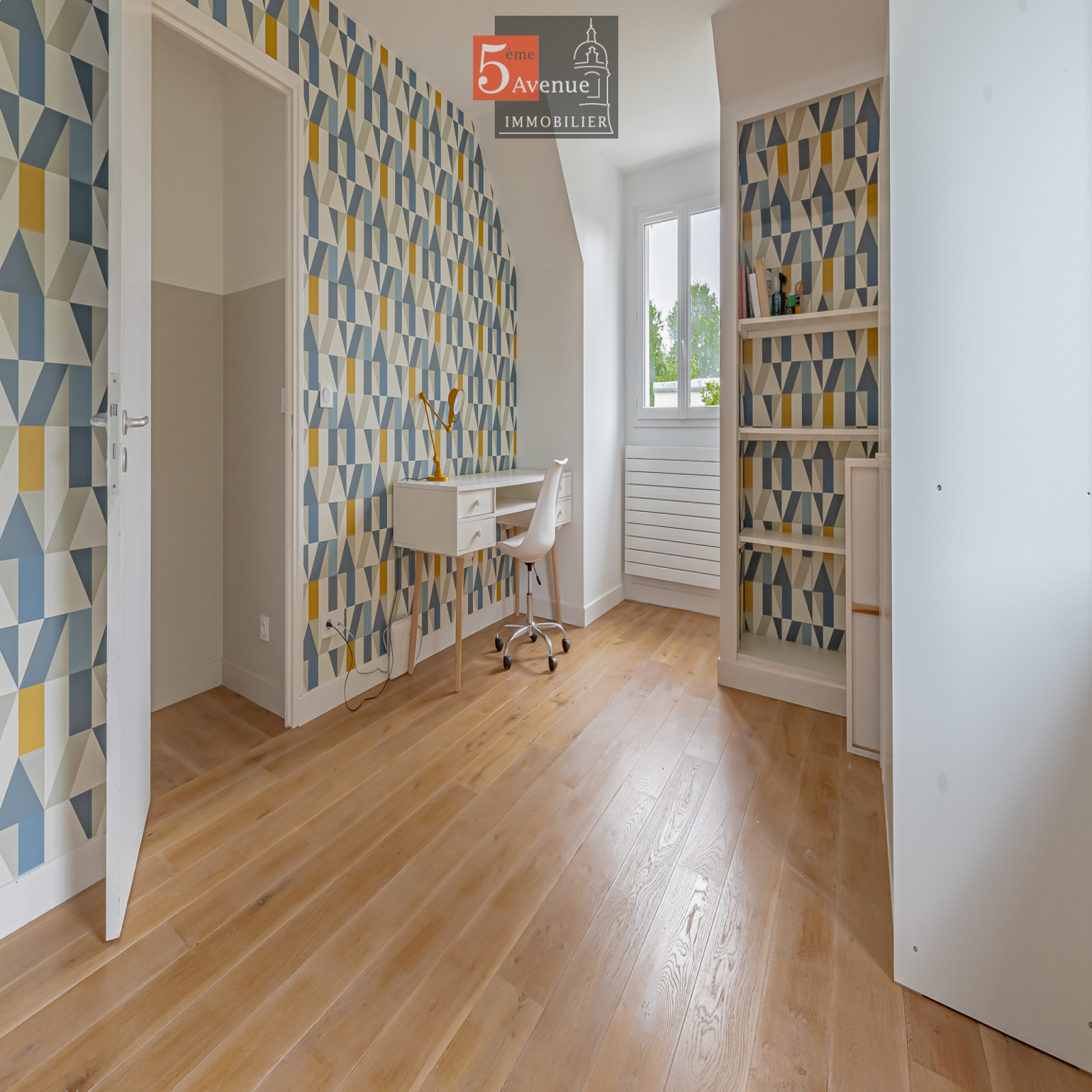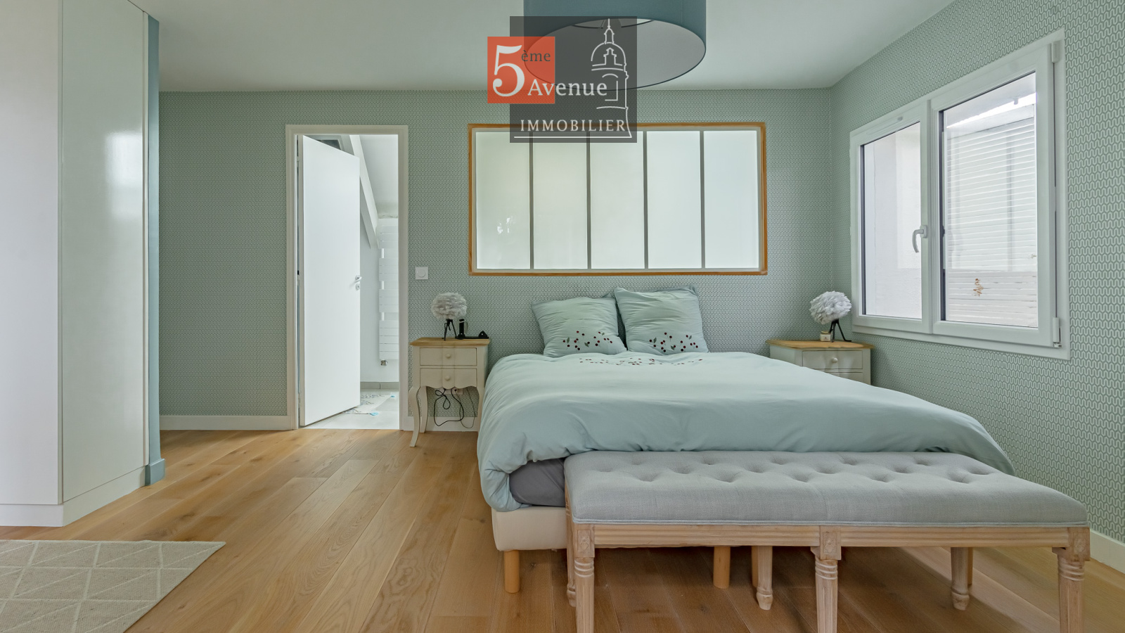 À l’étage, un palier dessert deux grandes chambres, une salle de bains, ainsi qu’une superbe suite parentale avec dressing et salle de bains privative, garantissant intimité et confort.