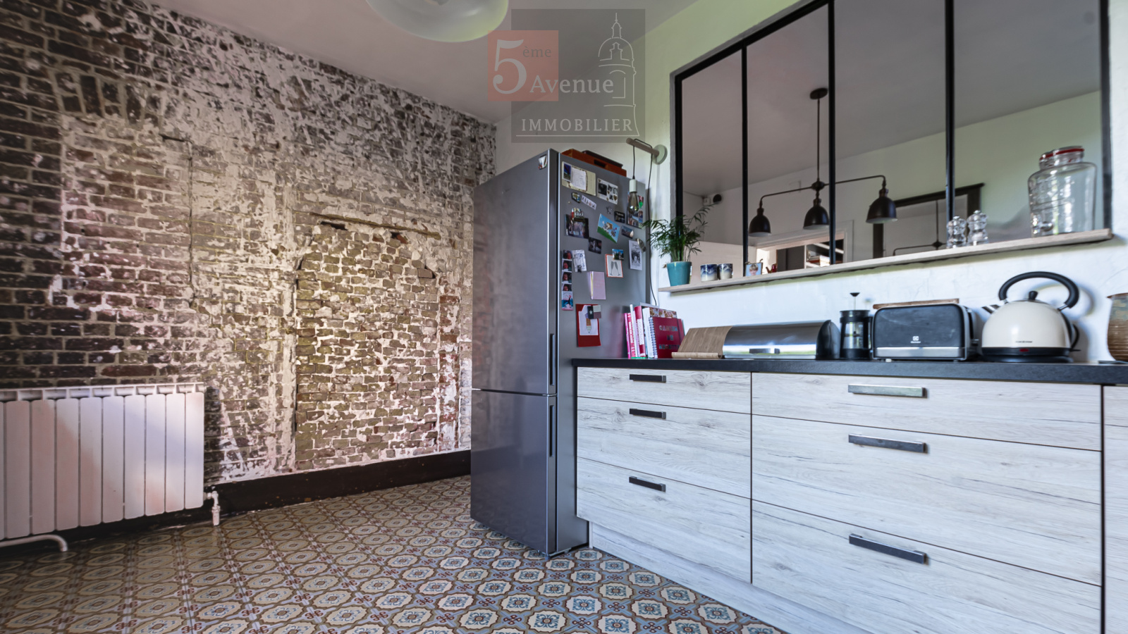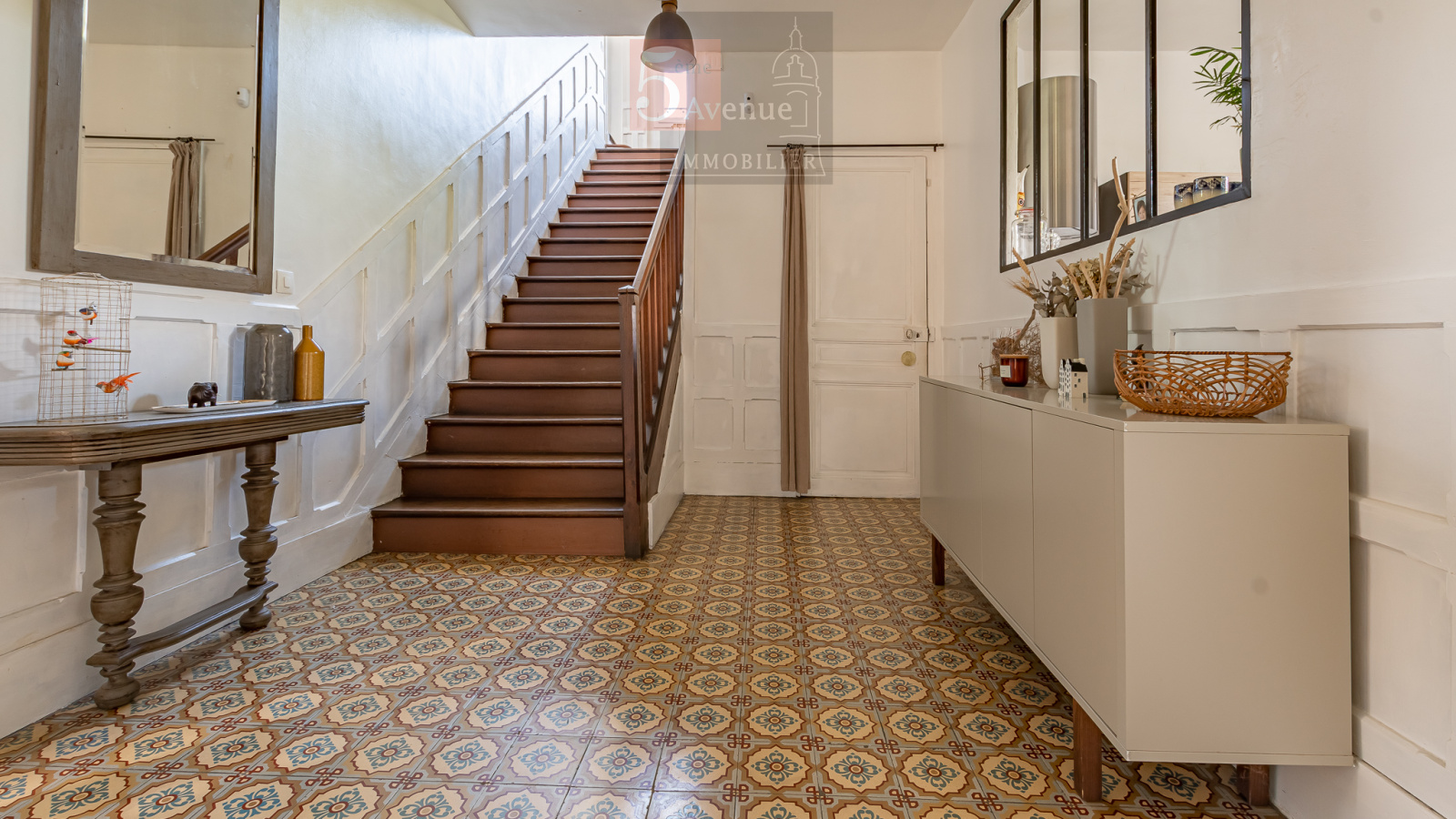 Entrée spacieuse avec de véritable carreaux de ciment au sol et une hauteur sous plafond de 3m sur l 'ensemble de la maison, vous découvrirez ensuite une très belle salle à manger et dans la continuité un salon de plus 48m², cuisine récente tout équipée, une chambre ainsi qu'une salle d'eau complète le rez de chaussée.