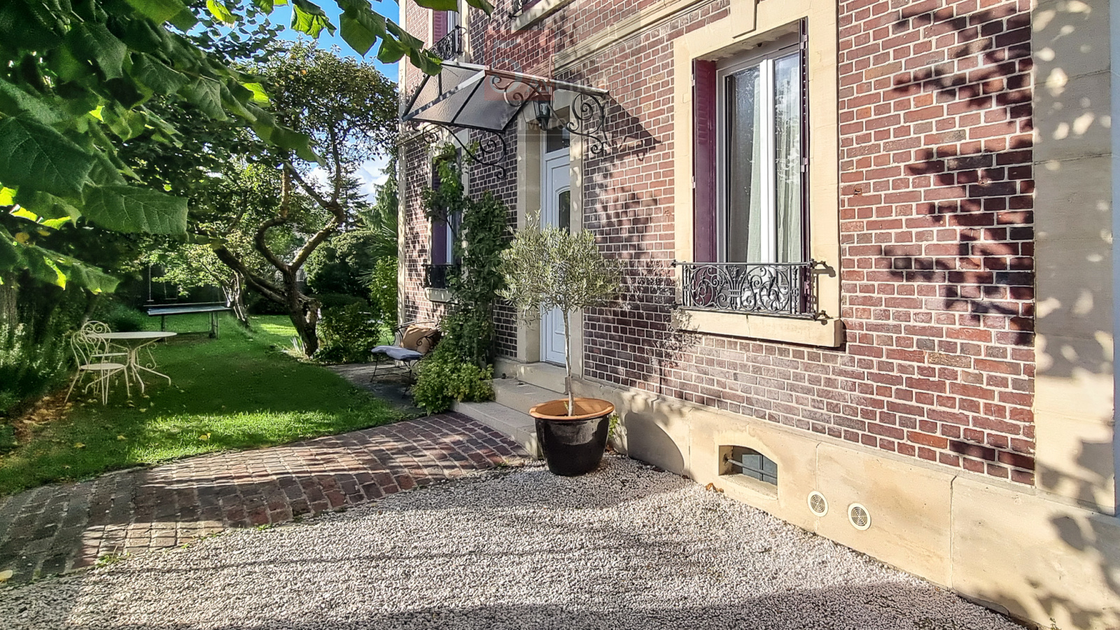 Un jardin clos de 1000m² entoure cette demeure familiale avec un espace pour stationner plusieurs véhicules