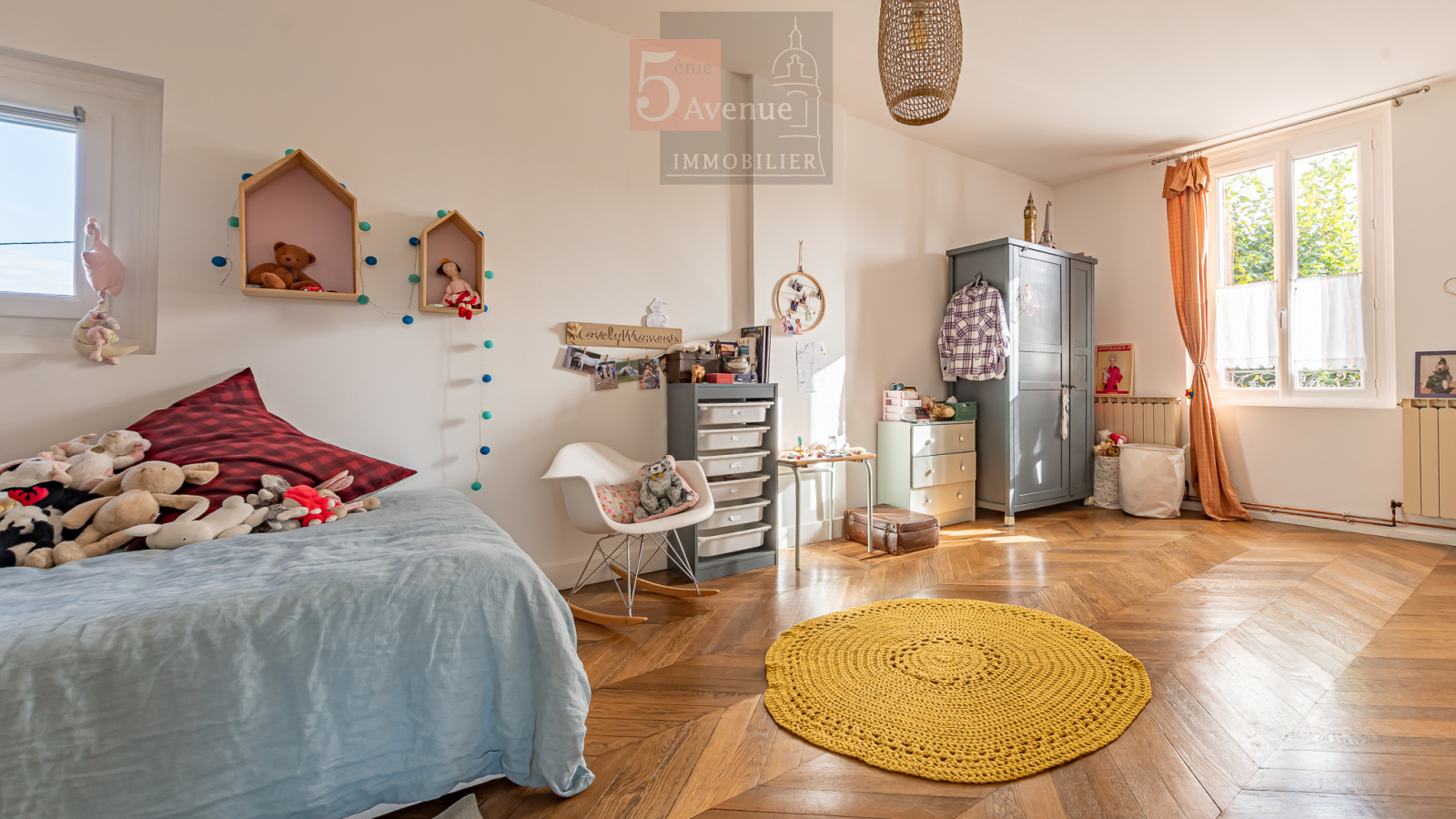 L'étage quant à lui, est composé de 5 grandes chambres, d'un bureau et d'une salle de bains récente avec baignoire îlot et douche.