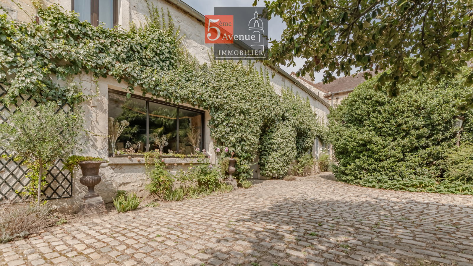 Ancien corps de ferme avec cour végétalisée et magnifique jardin clos de murs