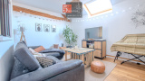 Il comprend un salon convivial, cuisine ouverte, une chambre et une salle de bains,