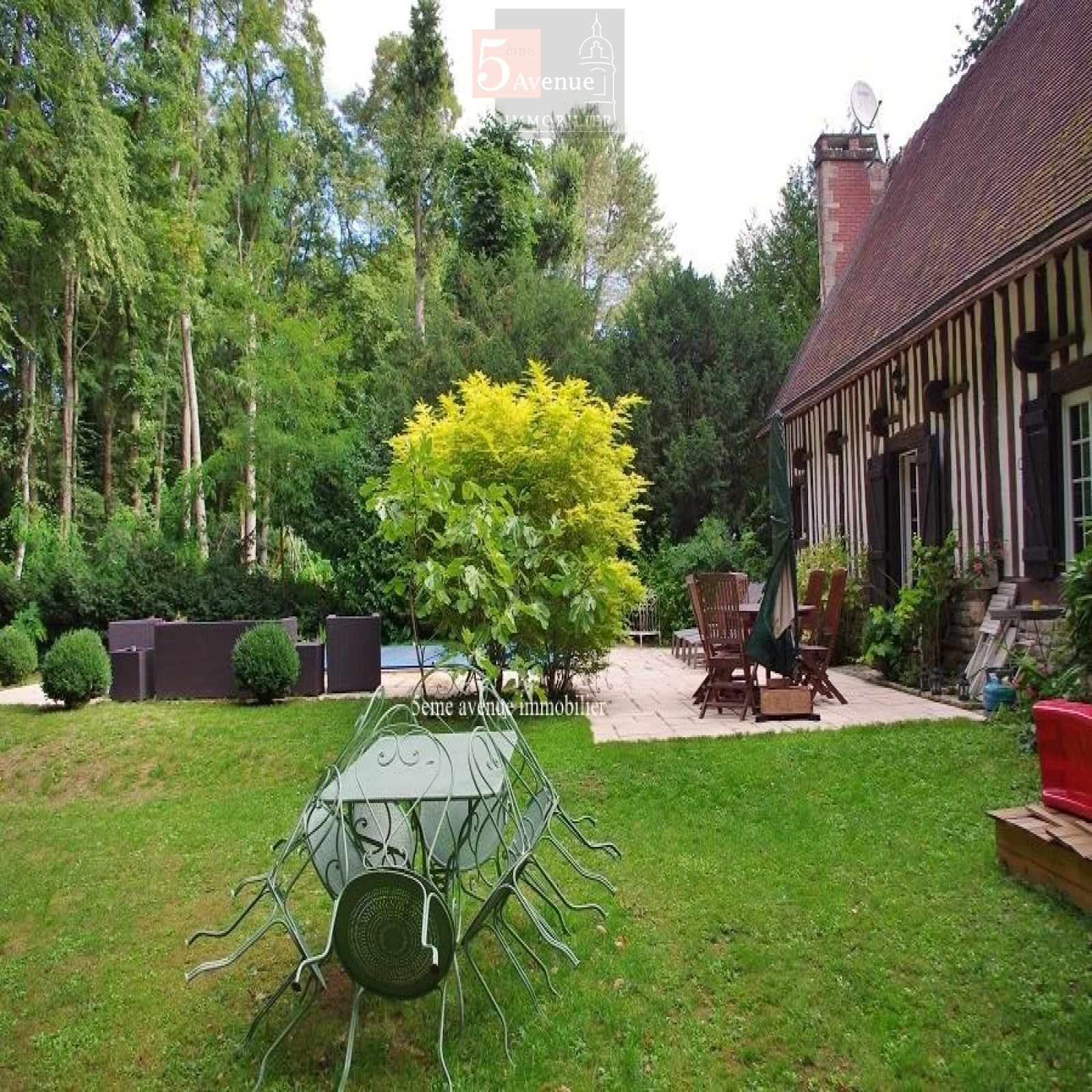 LE LYS LAMORLAYE. très belle maison de style anglo-normande. Grande salle à manger, séjour indépendant avec cheminée. De nombreux ouvrants permettent de profiter des vues sur le jardin paysagé ainsi que la piscine, cuisine spacieuse. A l'étage, quatre chambres dont une suite parentale avec dressing et salle d'eau. Cheminée, poutres, tomettes. Magnifique terrain paysagé de 5 317 m² avec une piscine chauffée (8X4). Sous sol total. Bel ensemble immobilier de caractère offrant volume et charme. Maison située dans un domaine privilégié, à 5km de la gare de Chantilly avec accès direct Paris gare du nord en 25min.