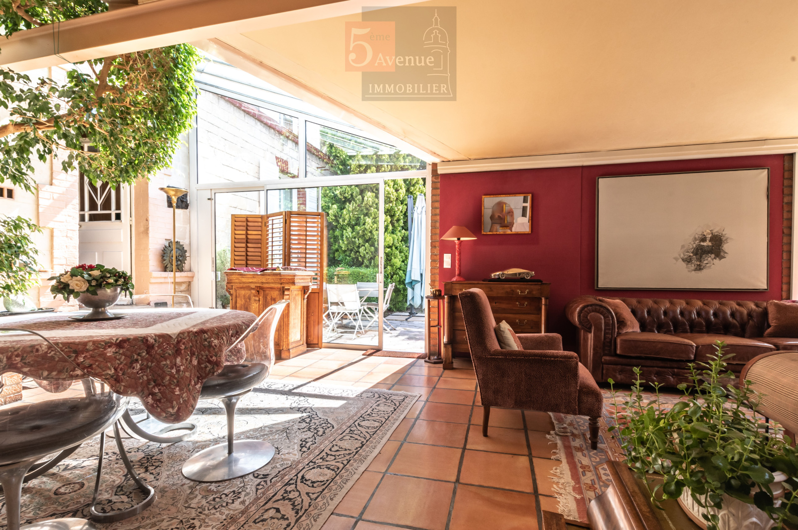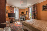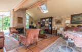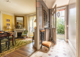 L'entrée avec le sol à cabochon dessert un premier salon avec cheminée ancienne et parquet ainsi qu' une salle à manger au charme identique. dans le prolongement, un bureau et une cuisine indépendante qui mène au salon principal, sous la belle véranda de 50m² bordé par les baies vitrées ouverte sur le parc. Cette magnifique pièce donne tout un attrait à la maison, la vue sur le jardin paysagé et la hauteur sous plafond invitent à l'apaisement et au bien-être.