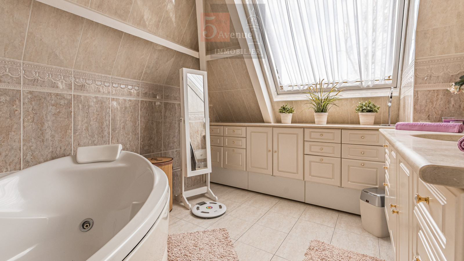 A l'étage, on retrouvera une suite avec dressing, salon et salle de bains ainsi que deux autres chambres.