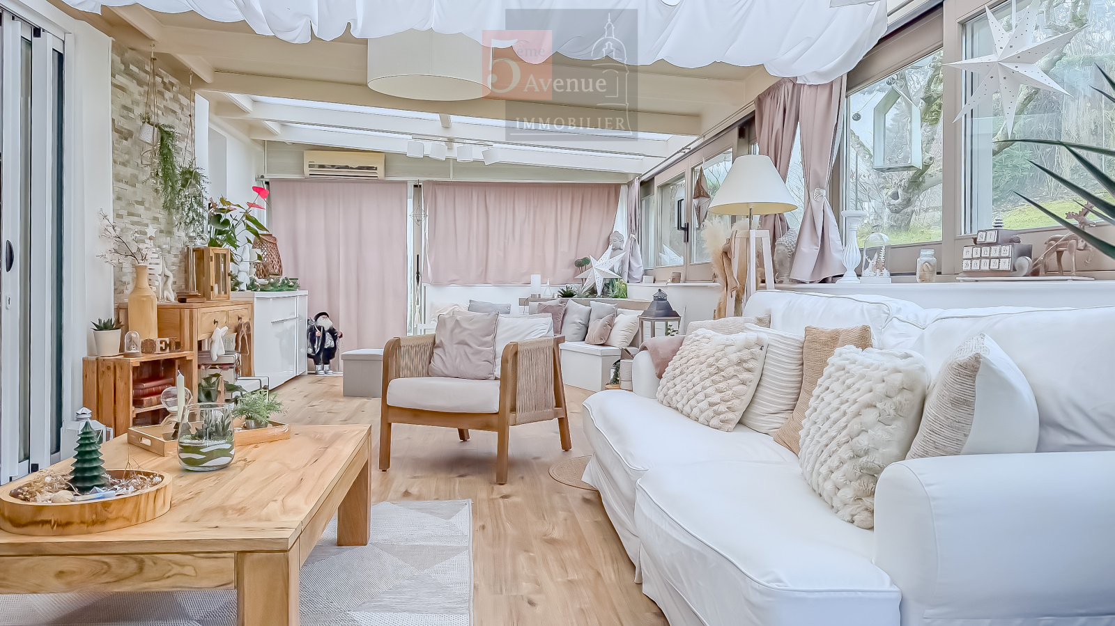 À l’extérieur, le jardin arboré entièrement clos dispose d’une terrasse couverte et d’un cabanon.