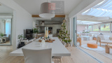 Au rez-de-chaussée, une entrée dessert un premier espace détente avec cheminée, une salle à manger ouverte sur une cuisine entièrement équipée ainsi qu’une véranda lumineuse équipée d’un poêle à granulés et d’une climatisation réversible, formant un espace de vie convivial de près de 80 m². Une chambre avec salle d’eau privative complète ce niveau.