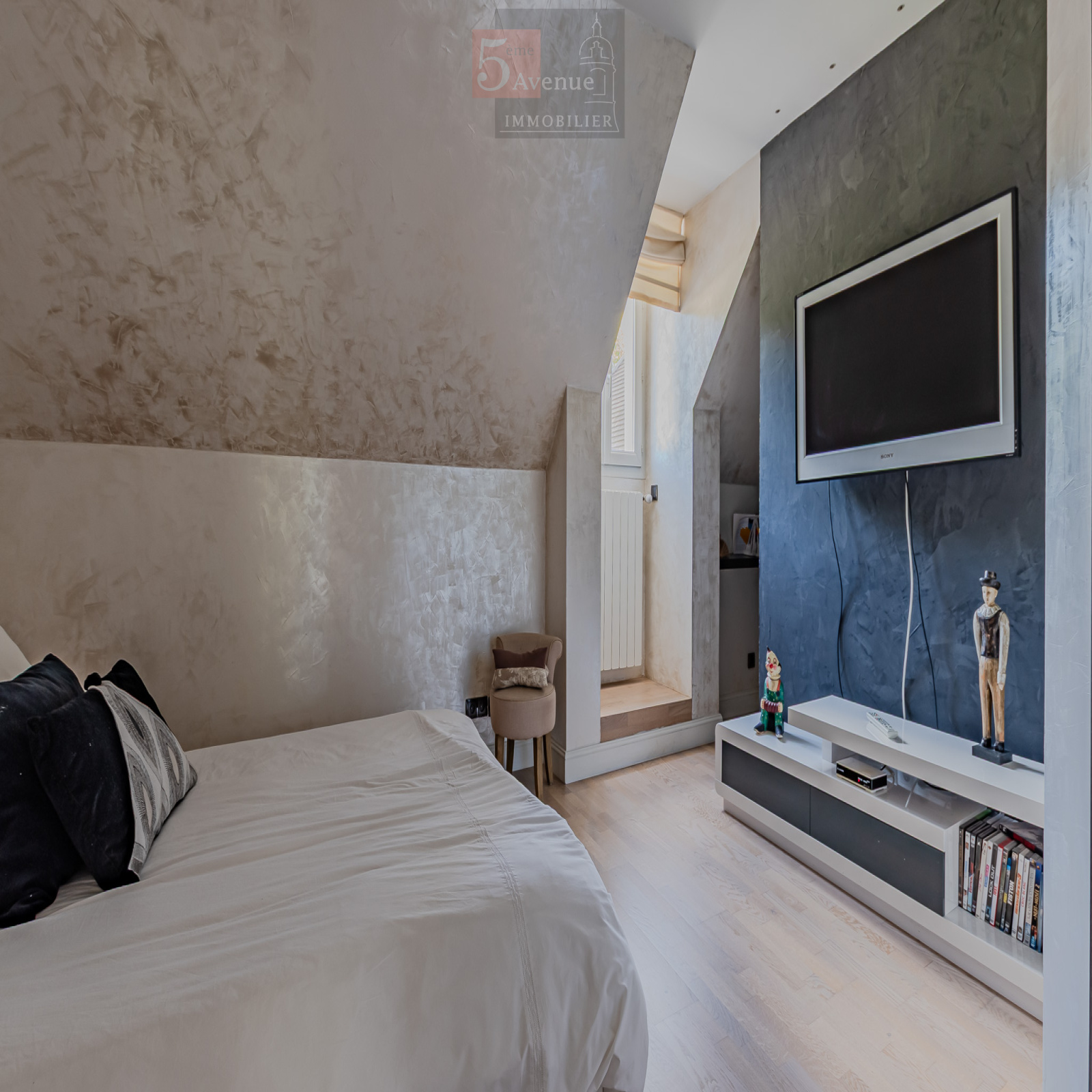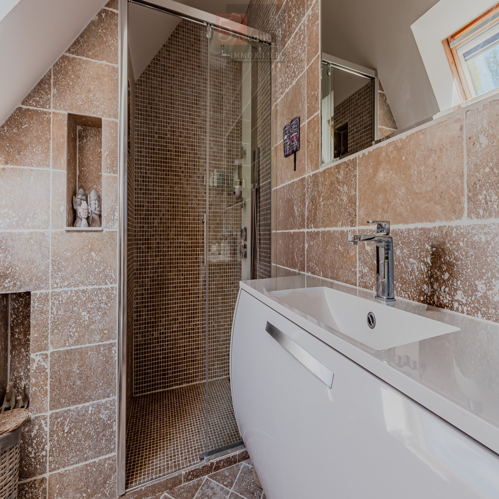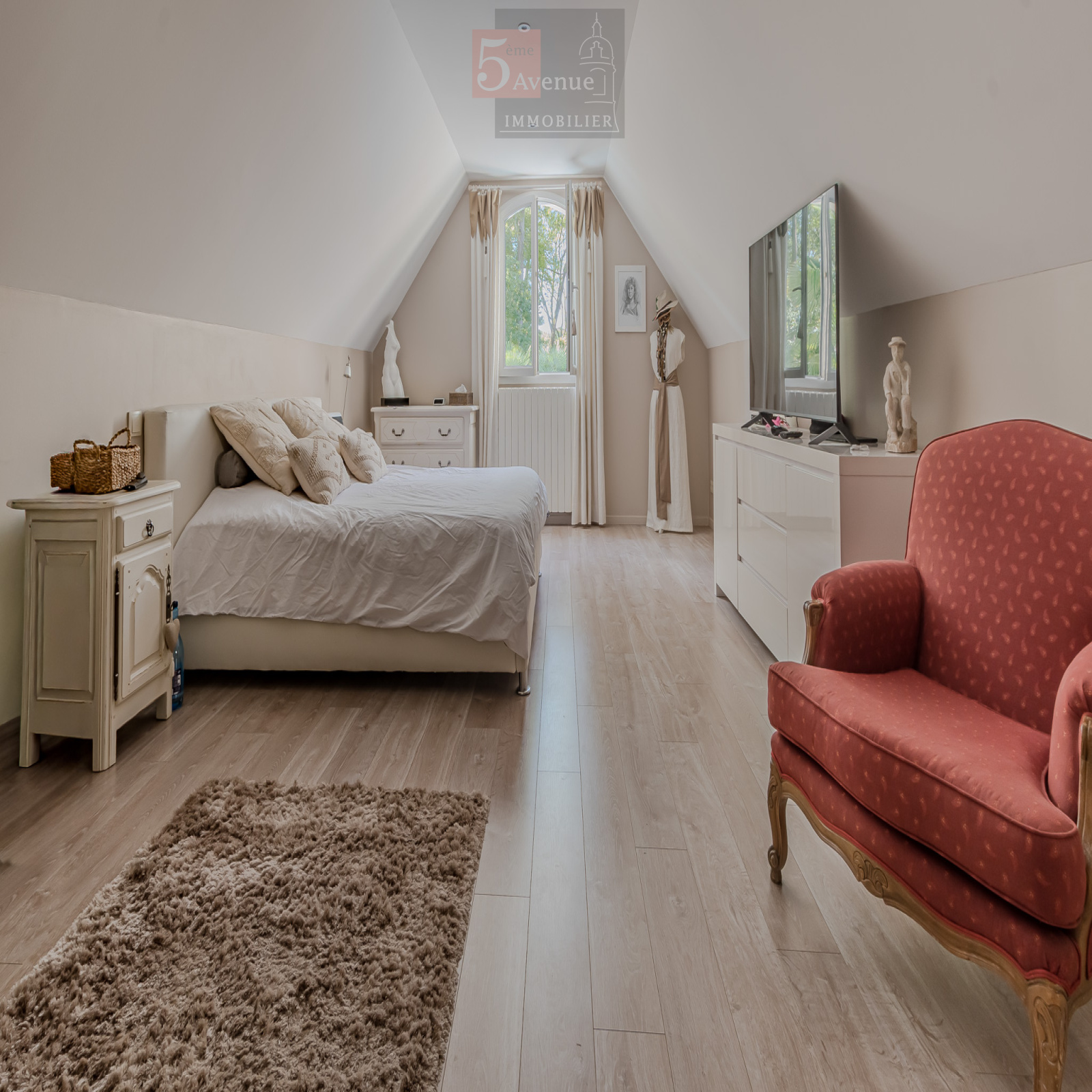 À l’étage, un palier dessert une superbe suite parentale de plus de 35m² avec dressing et salle d’eau récente, ainsi que trois autres chambres, dont deux avec dressing, et une salle de bain équipée d’une baignoire et d’une douche.