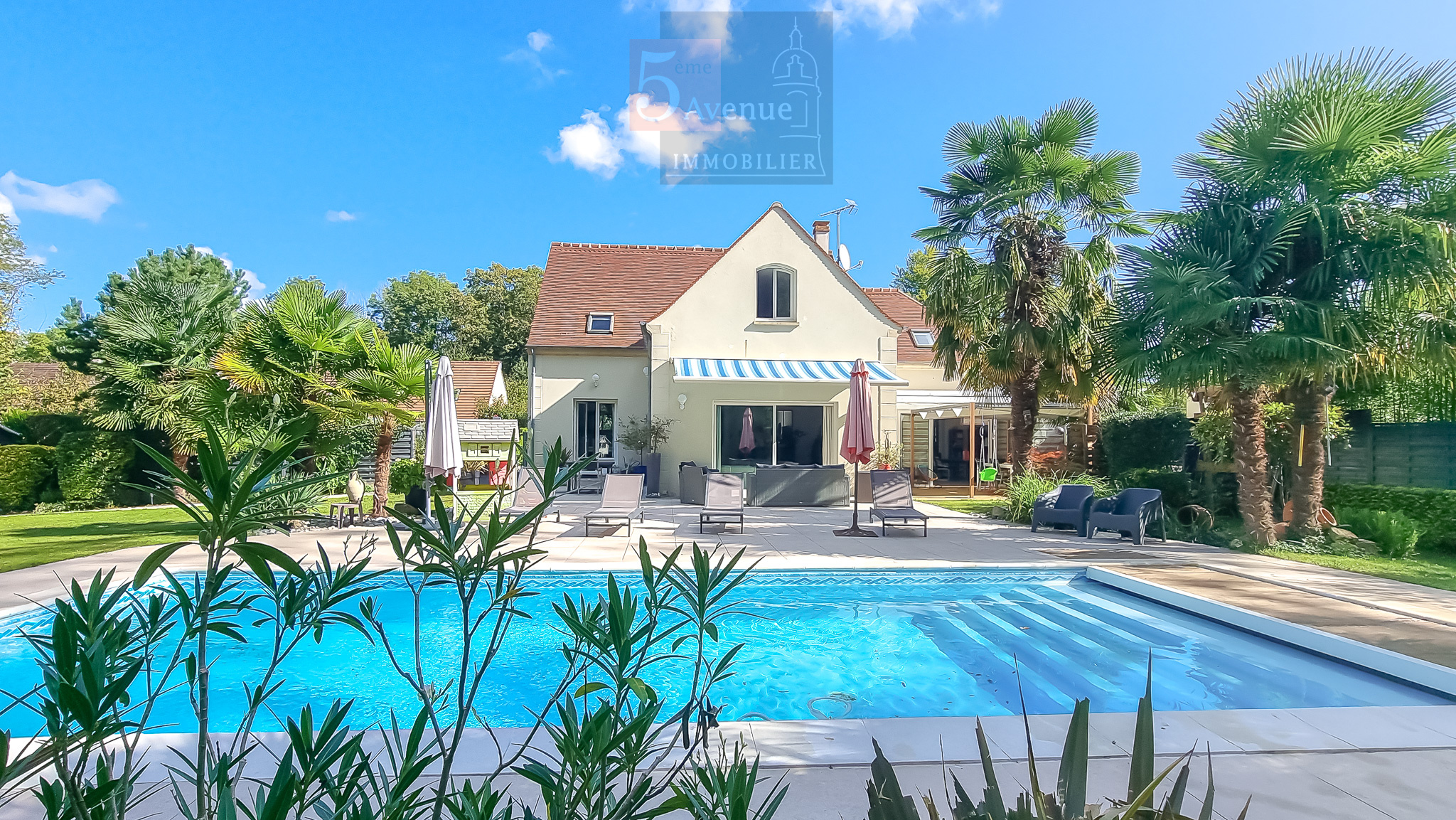 Un double garage d’environ 35m² complète l’ensemble. À l’extérieur, vous profiterez d’un magnifique parc clos et arboré de plus de 2100m² ainsi que d’une très belle piscine chauffée.