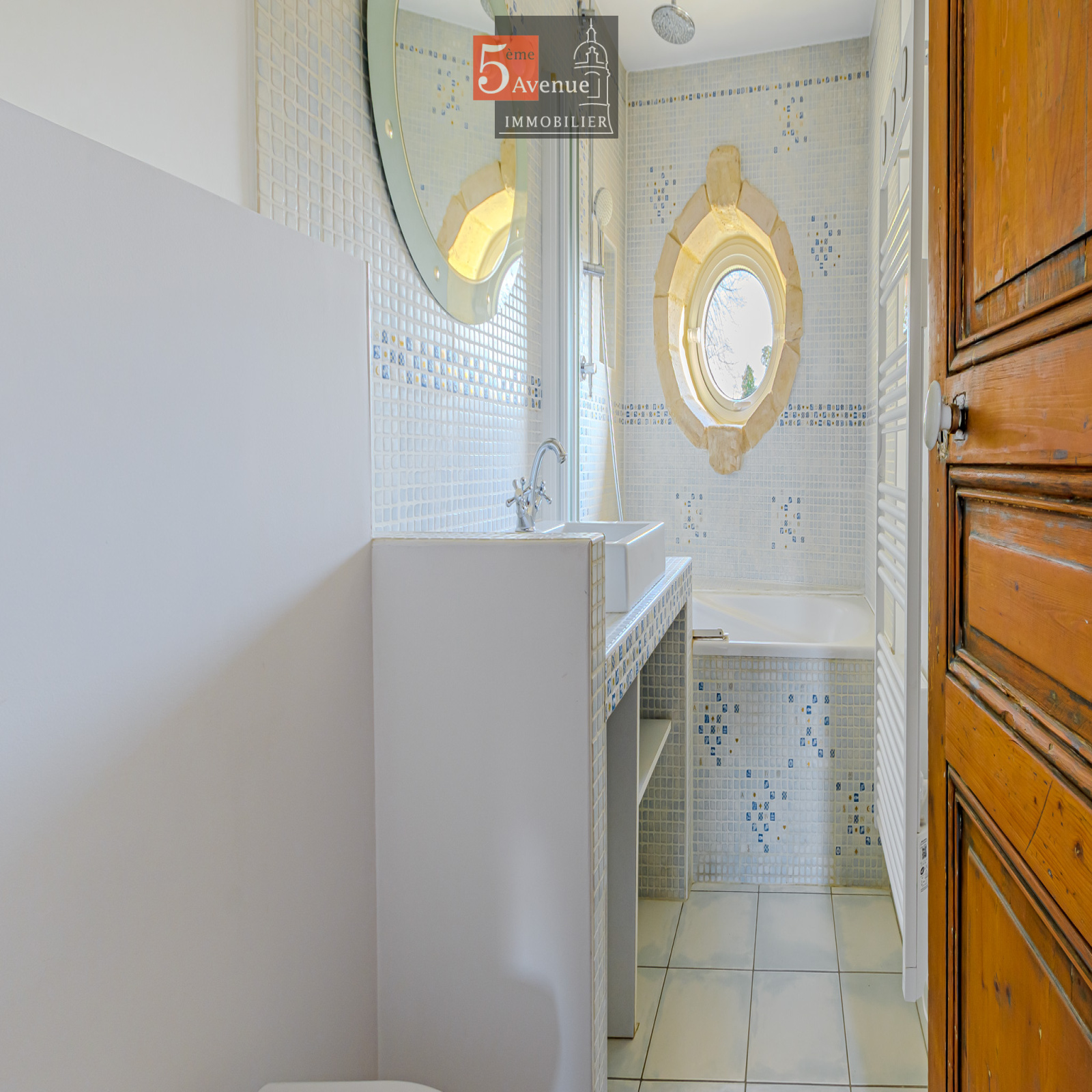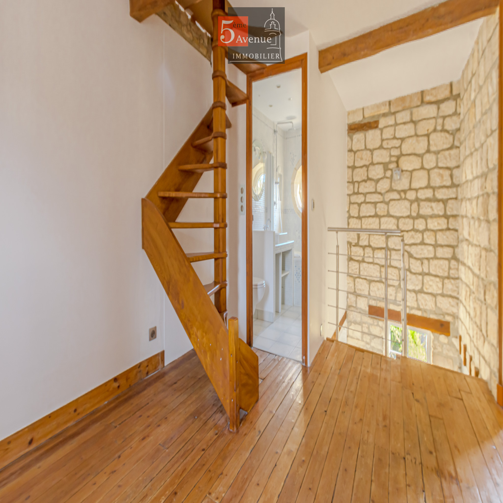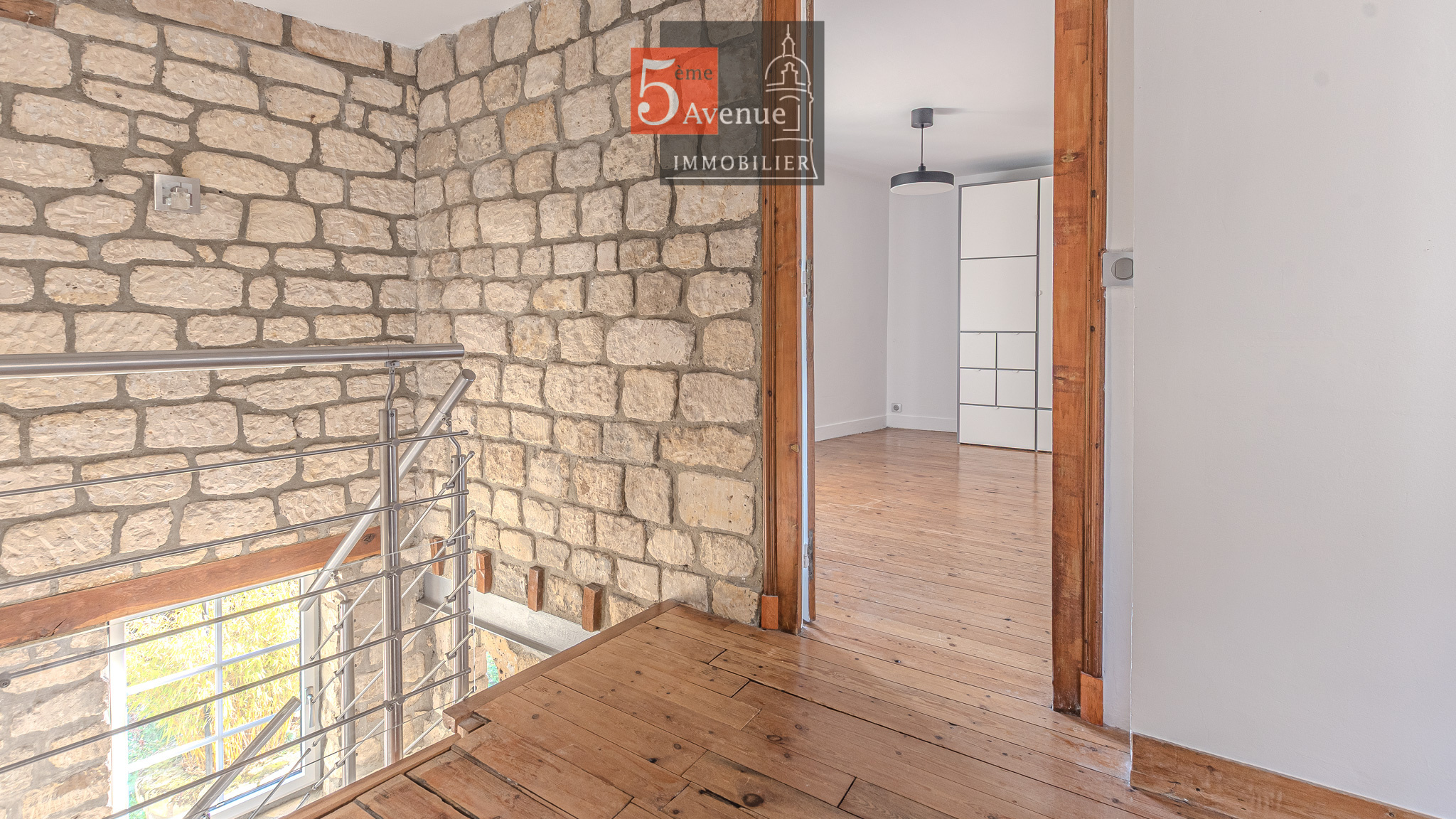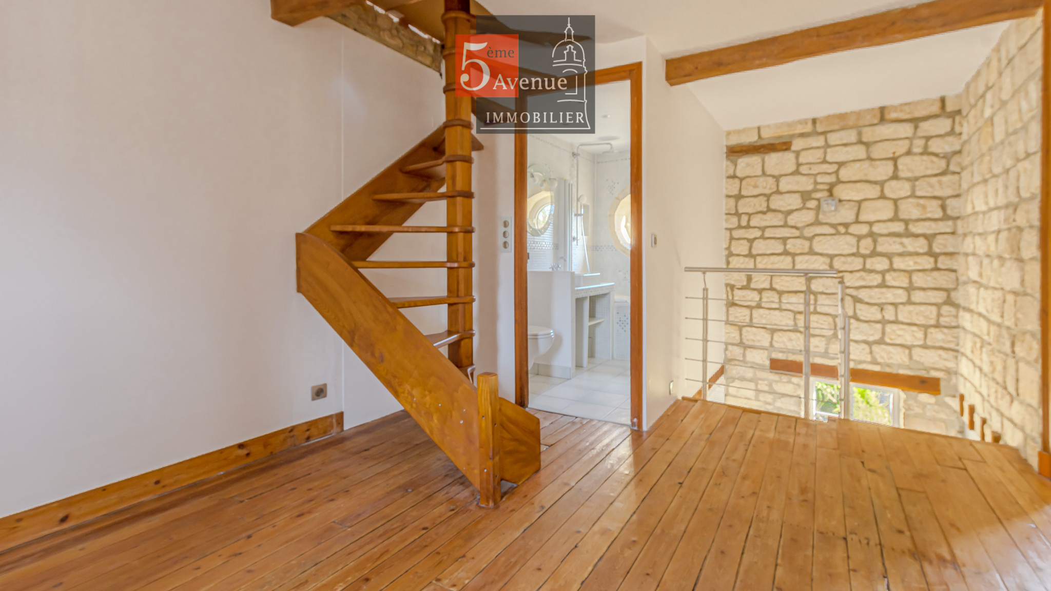 À l’étage, un palier spacieux de 14 m², idéal pour un bureau ou un espace détente, dessert deux belles chambres ainsi qu’une salle de bains.