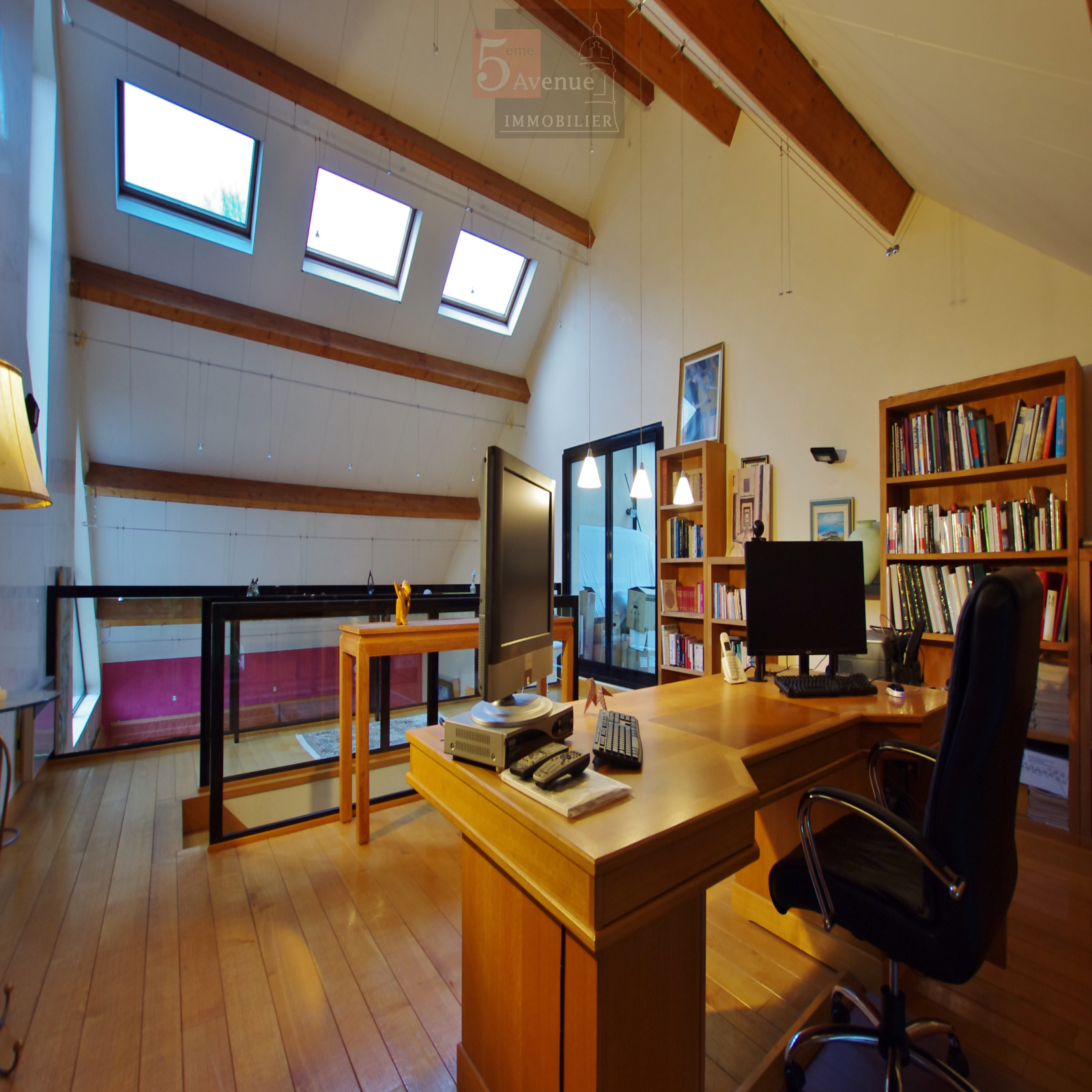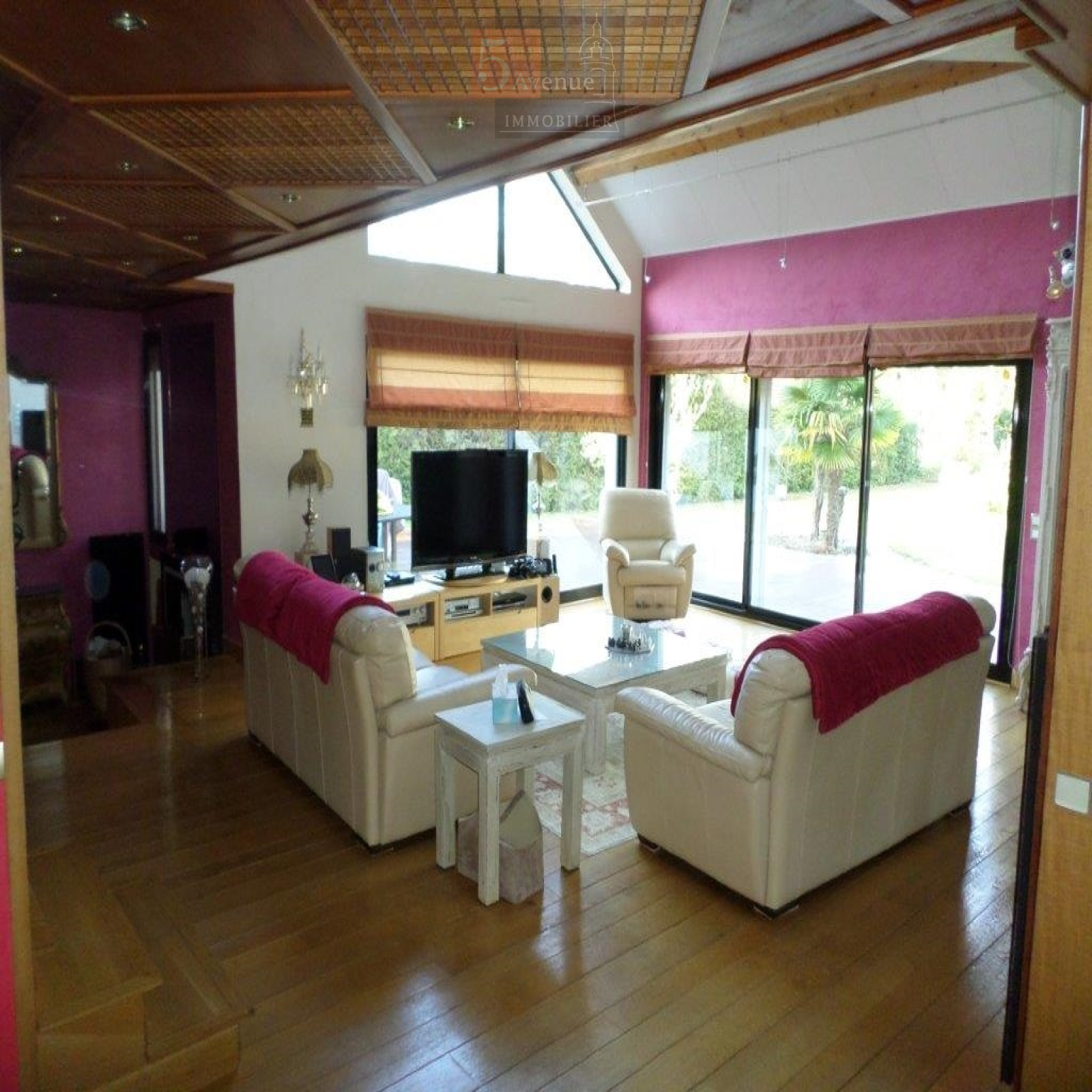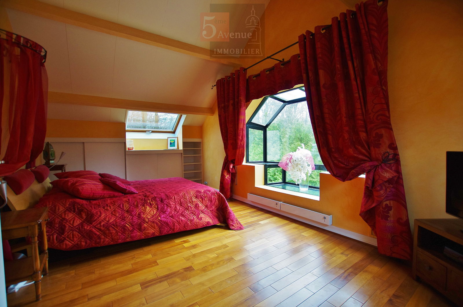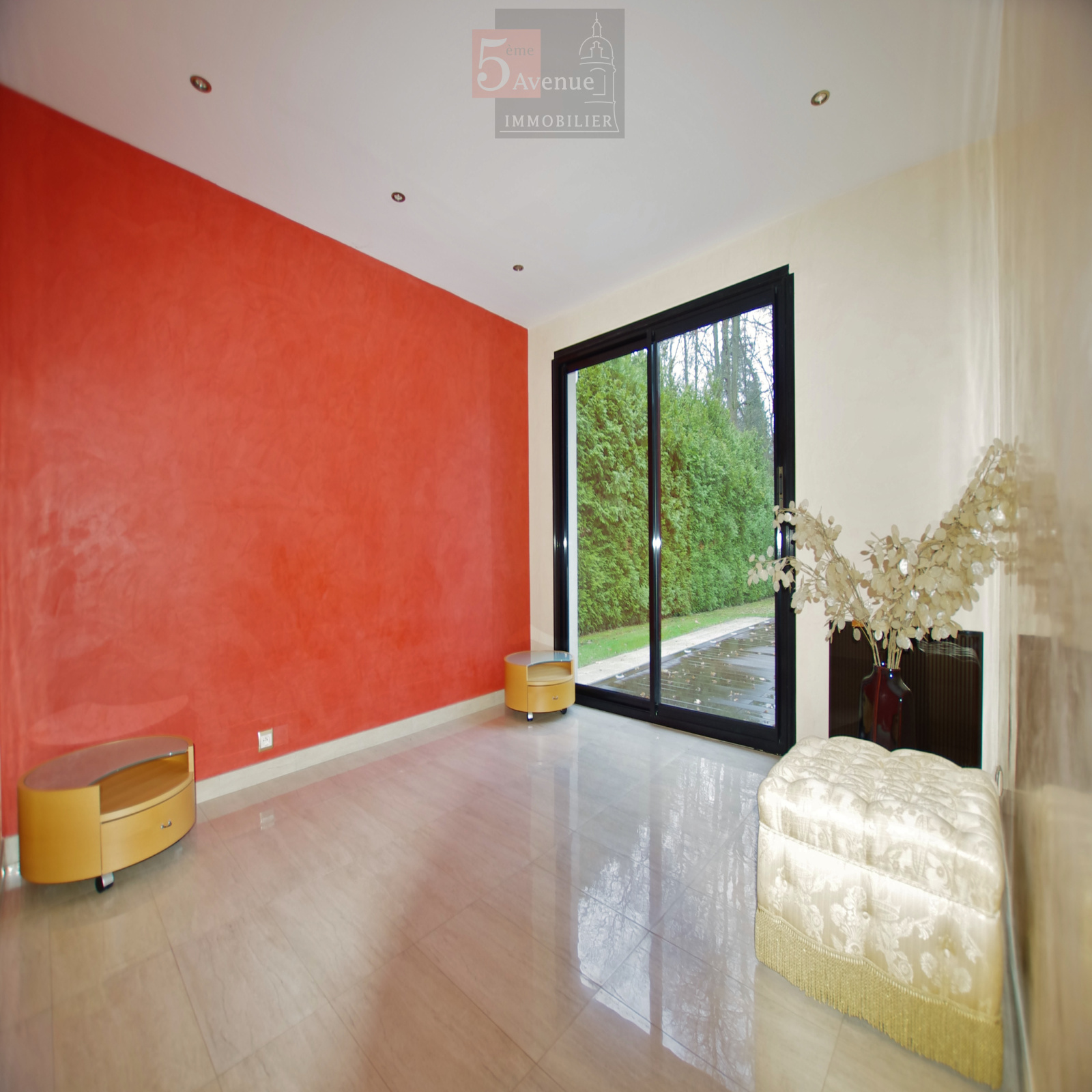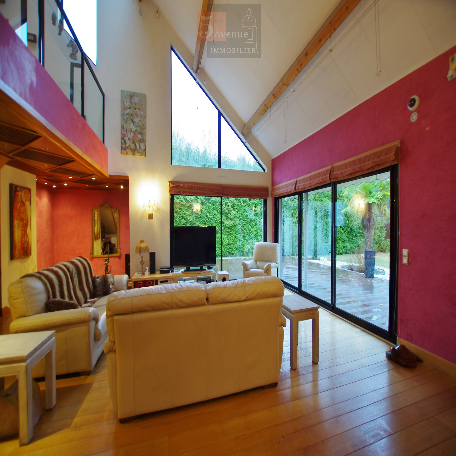 Magnifique maison d'architecte à Lamorlaye sur un parc boisé de 3000m², résolument moderne, spacieuse et lumineuse offrant un vaste séjour avec grande baies vitrées donnant sur le parc, salon, cuisine équipée, deux chambres, salle de bains et une suite avec salle de bains. A l'étage une mezzanine de 44m² avec une très belle hauteur sous plafond et une suite parentale avec salle de bains, grande pièce de 39m² à aménager sous verrière. Sous-sol partiel avec garage deux véhicules et cave à vins. Une très belle maison au calme à découvrir à l'agence 5ème Avenue Immobilier de Chantilly
