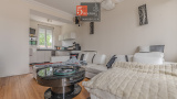 L’entrée ouvre sur un bureau indépendant, suivie d’une chambre avec pièce dressing indépendante. Le séjour lumineux de 26 m² avec cuisine ouverte offre un bel espace de vie. Une salle de bain complète l’ensemble.