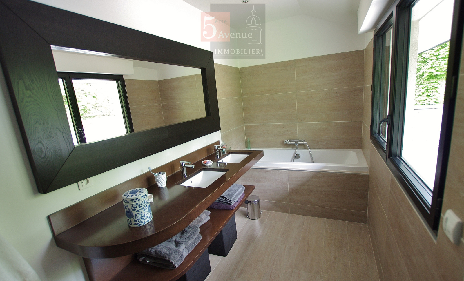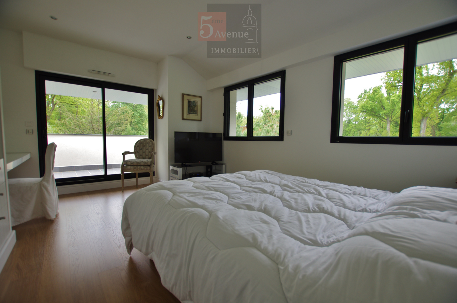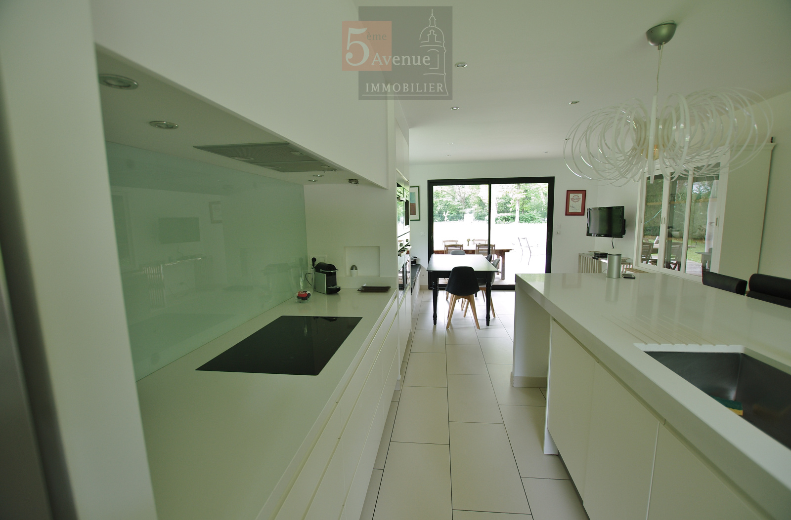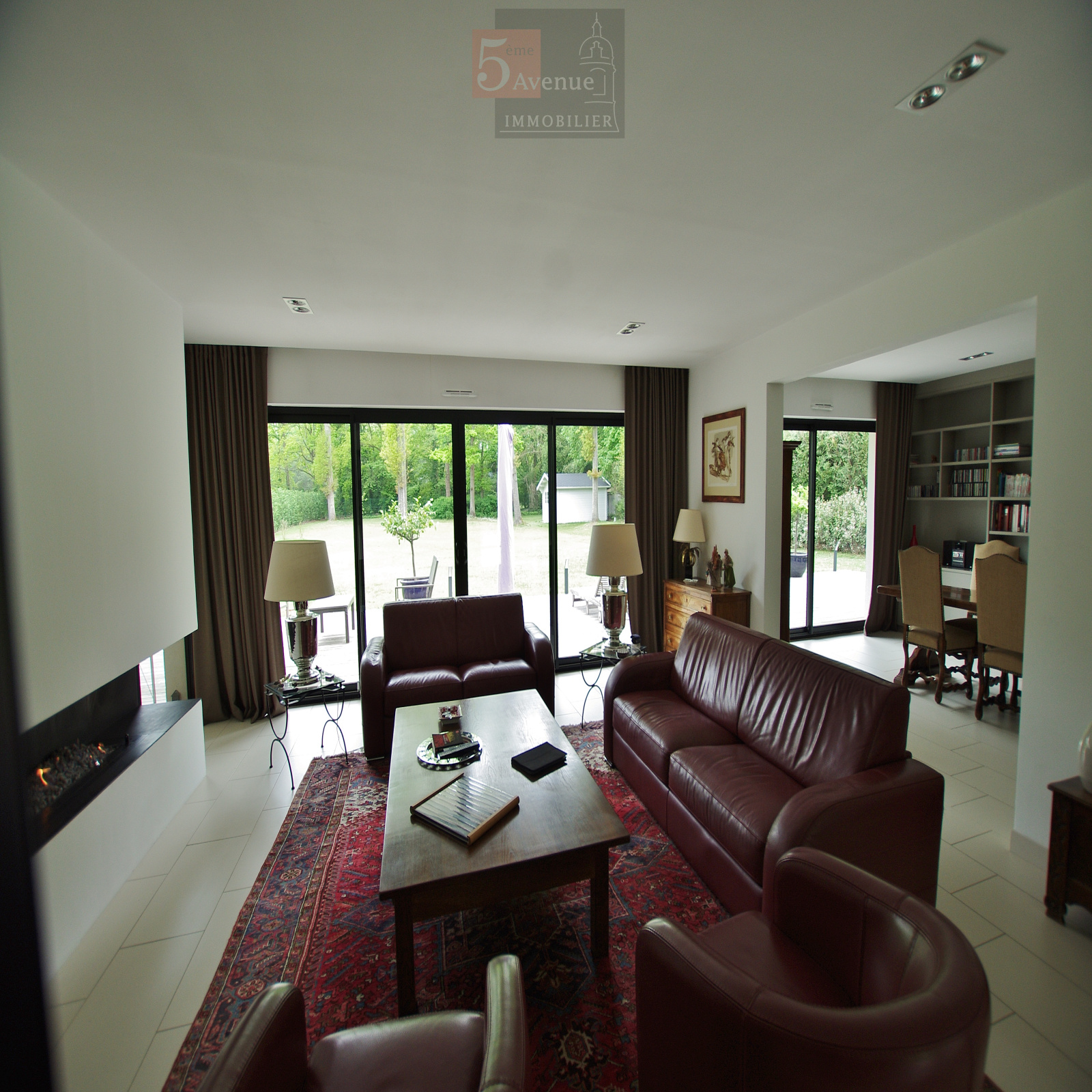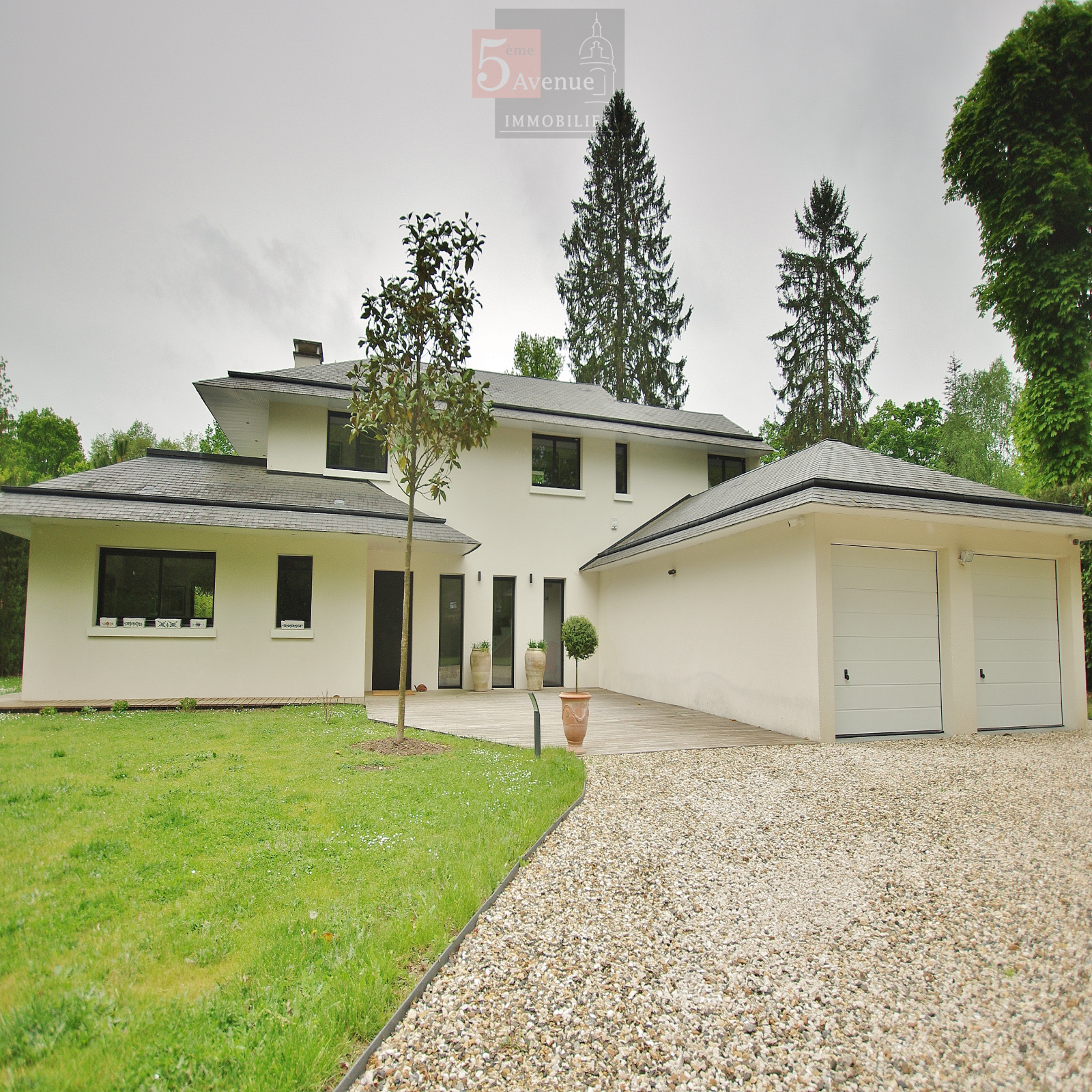 Exceptionnelle villa récente au cœur du domaine du Lys Lamorlaye, située au calme et comprenant au rez de chaussée une entrée donnant sur un séjour avec cheminée, salle à manger, vaste cuisine équipée familiale, une grande suite avec baignoire et douche. A l'étage 4 chambres dont deux avec terrasse et une salle de bains. Belle terrasse en bois sur l'ensemble, garage double, abri de jardin. Lumineuse (nombreuses baies vitrées) et rare à la vente sur ce secteur, cette villa d’architecture moderne séduira par son emplacement et son design. Terrain clos et arboré de 3 306 m².