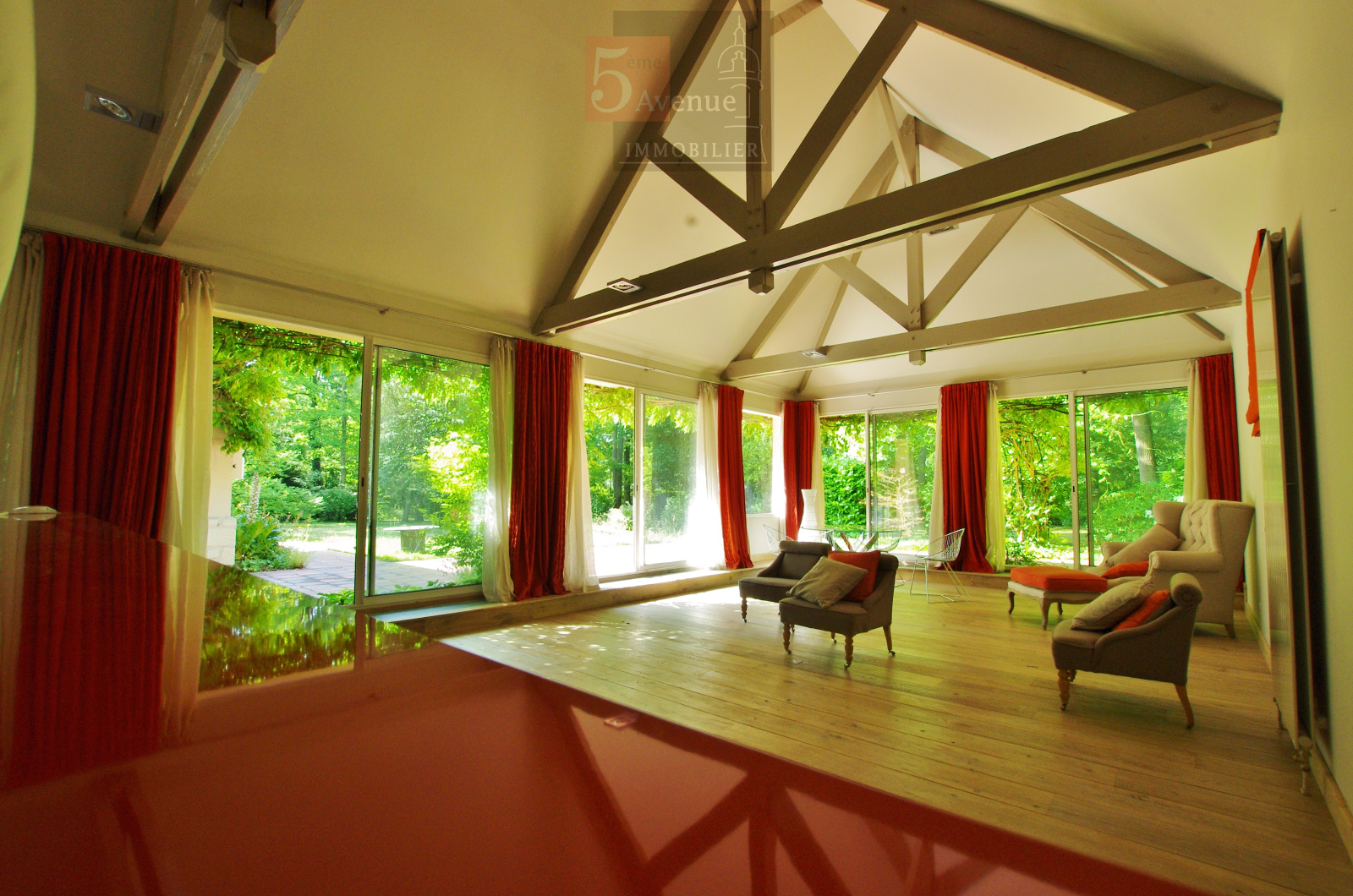 Lamorlaye le Lys , très belle propriété de 300m² habitable située au calme dans un écrin de verdure de 4750m². L'entrée distribue un séjour avec cheminée, beau salon et salle à manger ( 80 m² de reception), cuisine équipée de 24m², buanderie, salle d'eau et magnifique séjour de 80m² ' grandes baies vitrées donnant sur le parc). A l'étage une mezanine 3 chambres, salle de bains et une suite parentale avec dressing, salle de bains et chambre de 25m². Sous sol total avec un vaste bureau ainsi qu'une belle salle de cinéma. Parc arboré, tomettes ancienne, toiture récente, huisserie double vitrage.....Un vaste garage double complète ce bien rare à la vente.