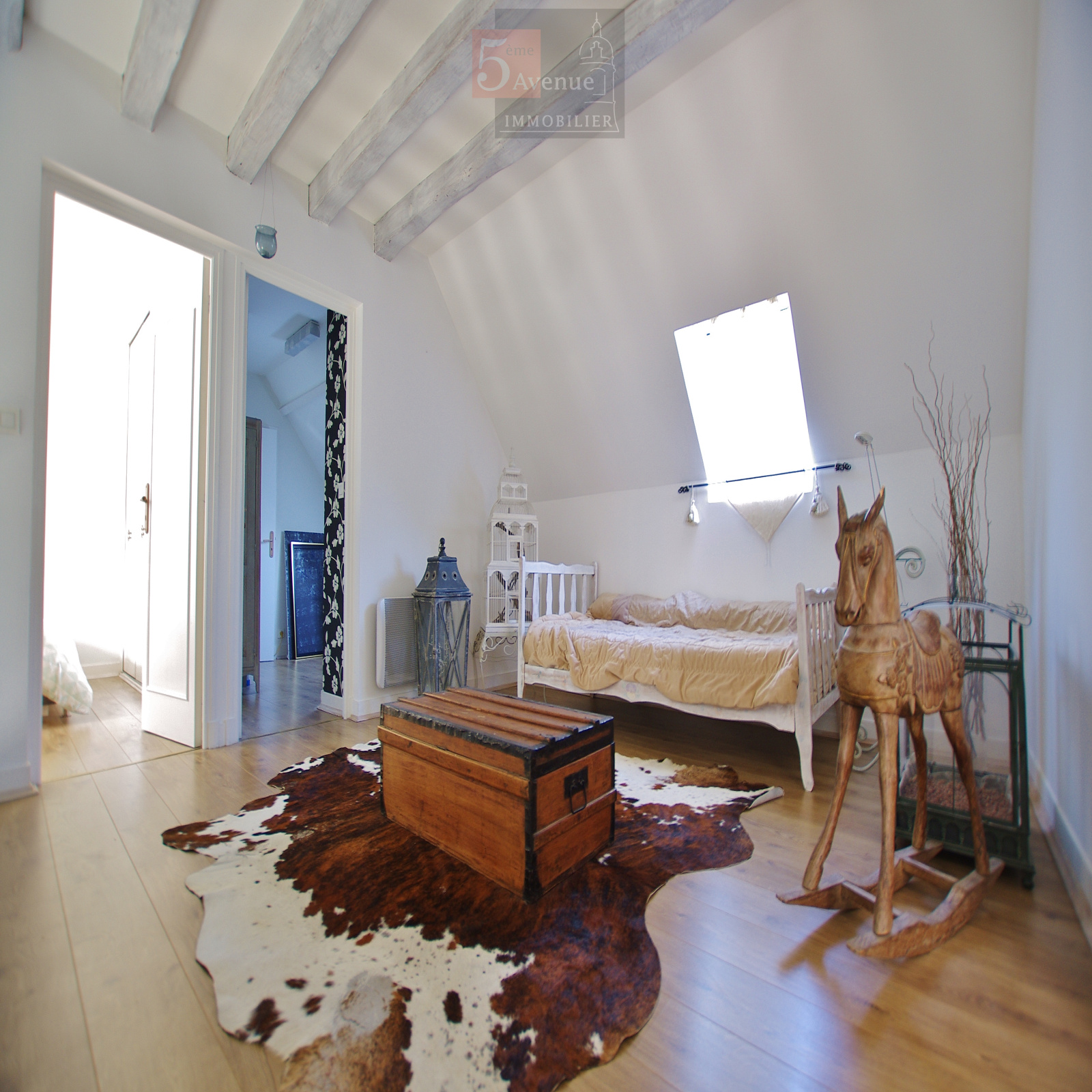 Située à Lamorlaye le Lys, dans une avenue calme et recherchée sur le domaine, cette maison de caractère comprend une entrée donnant sur un séjour double avec cheminée et poêle à granulés, cuisine équipée ouverte sur le séjour, deux chambres et une salle d'eau. A l'étage salle de jeux, 3 chambres, dressing et salle de bains. Sous sol total en partie aménagé offrant un beau potentiel, garage exterieur avec grenier aménageable à l'étage. Magnifique parcelle de 5980m² de terrain clos et arboré.