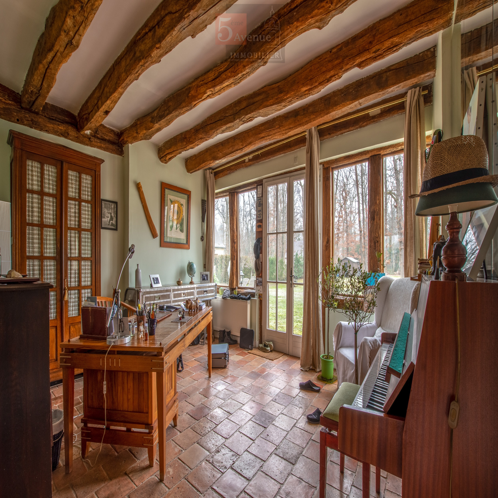A Lamorlaye le Lys, très belle maison de caractère et de charme de 1989, aménagée avec des matériaux anciens de qualité. Entreé, séjour double lumineux avec cheminée ancienne (nombreuses ouvertures sur le parc), cuisine, salle à manger, arrière cuisine, une chambre avec salle d'eau et un grand bureau donnant sur le parc arboré.