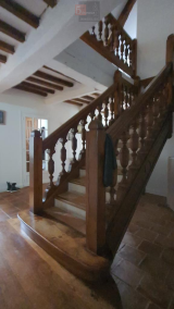 A l'étage, grande chambre dans la tour, salle de bains et dressing, une chambre indépendante et deux autres chambres avec accès à une salle de bains commune. Beaux espaces, le charme de l'ancien (cheminée ancienne, poutres, tomettes en terre cuite) et le confort moderne àt proximité du centre ville.