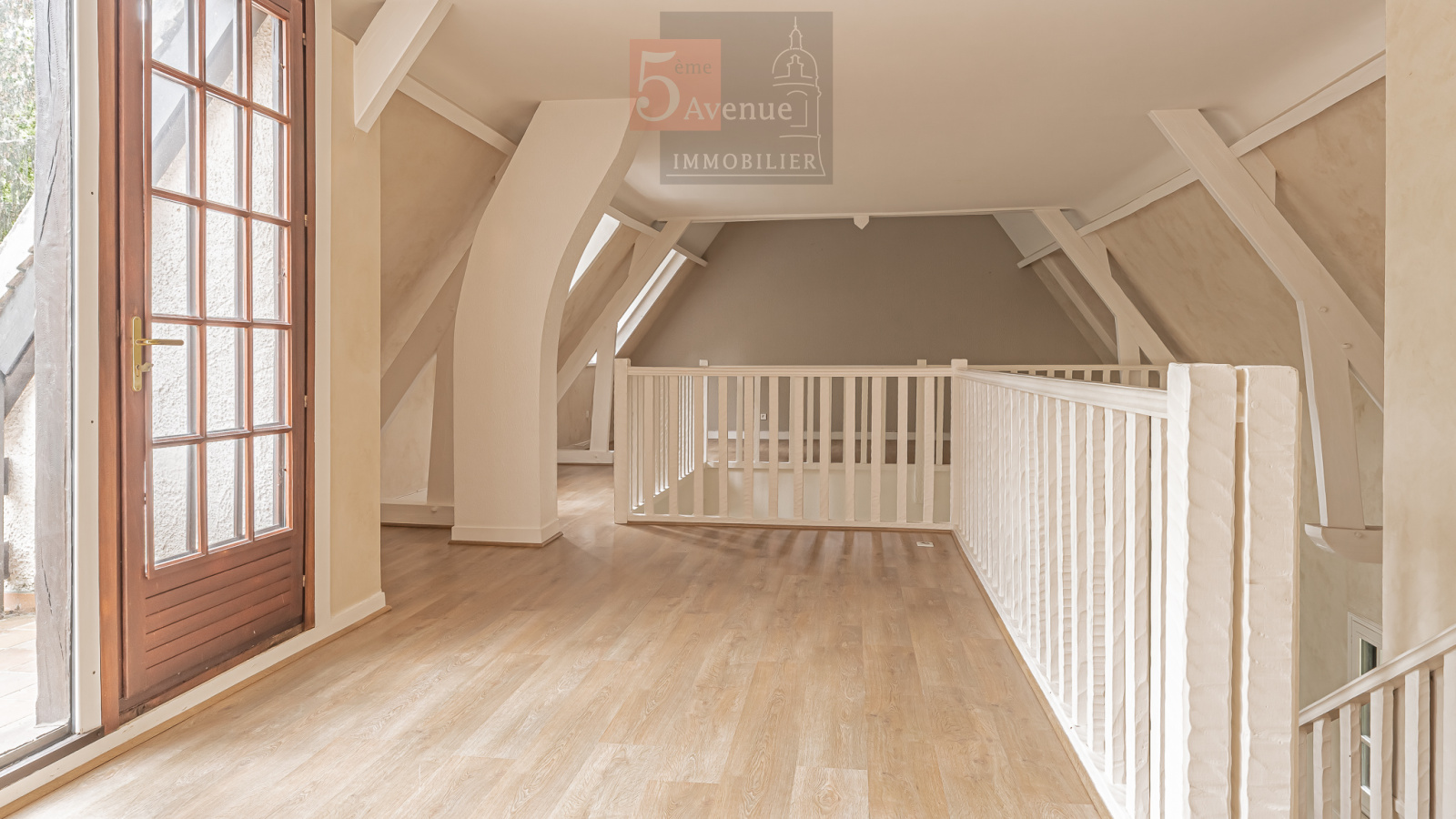 L'étage quant à lui comprend une vaste mezzanine, deux chambres, une salle d'eau et une suite parentale avec salle de bains et dressing.