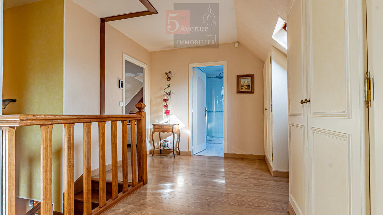 A l’étage vous découvrirez un palier avec de nombreux rangements, 4 chambres spacieuses et une salle d’eau.