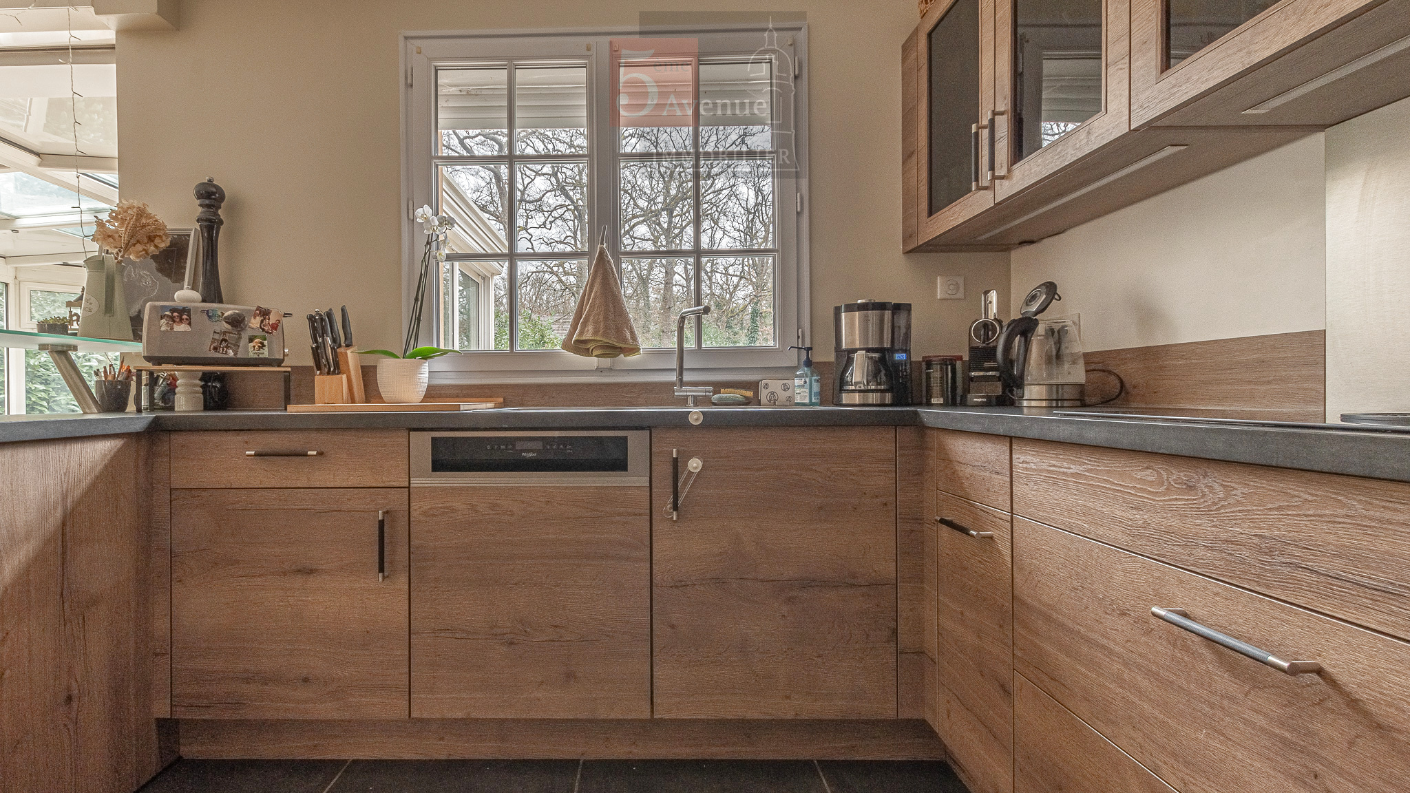 L'entrée donne sur un premier salon intimiste, salle à mager avec cusine équipée récente, dans le prolongement la véranda spacieuse et lumineuse et ouverte sur un sublime parc sans vis à vis entièrement végétalisé avec piscine et terrasse bois