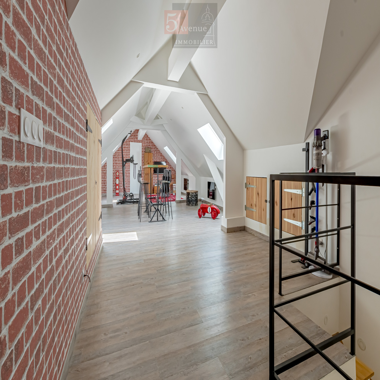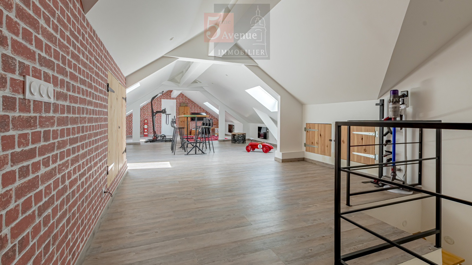 À l’étage, un palier de 60 m² actuellement aménagé en salle de jeux distribue quatre chambres, toutes équipées de leur salle d’eau privative et dressing, assurant confort et intimité à chacun.