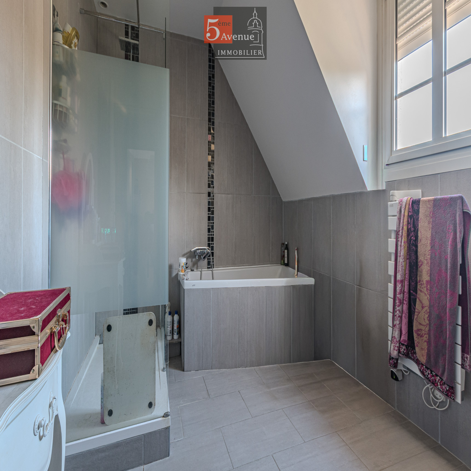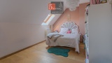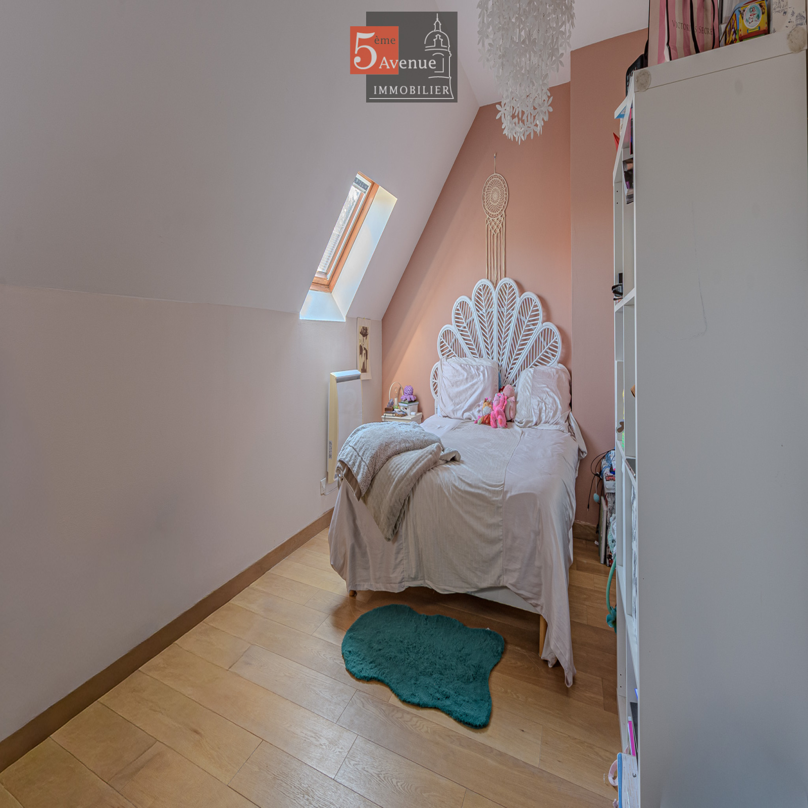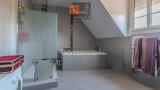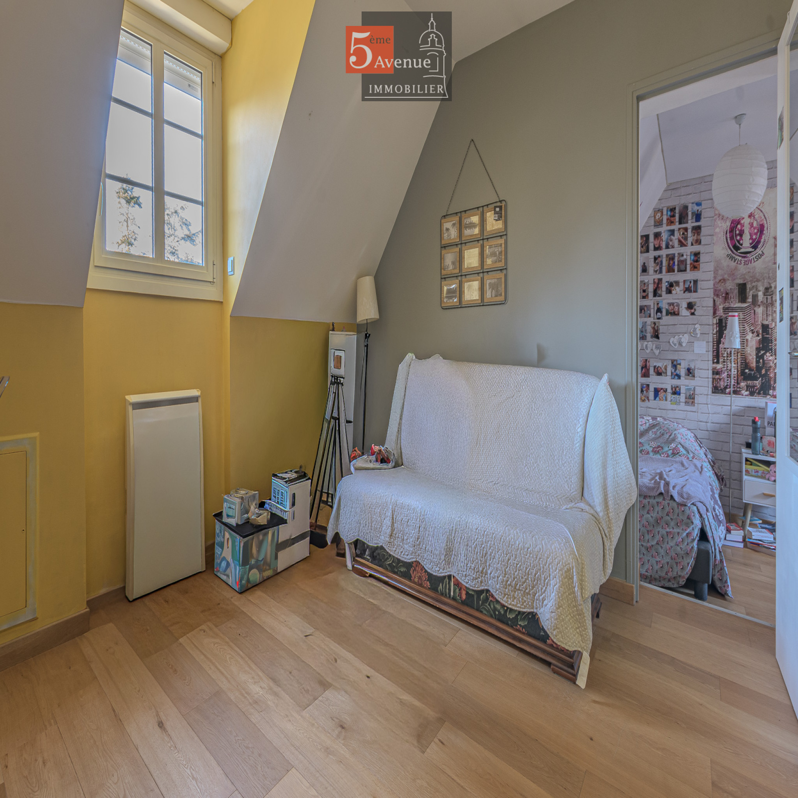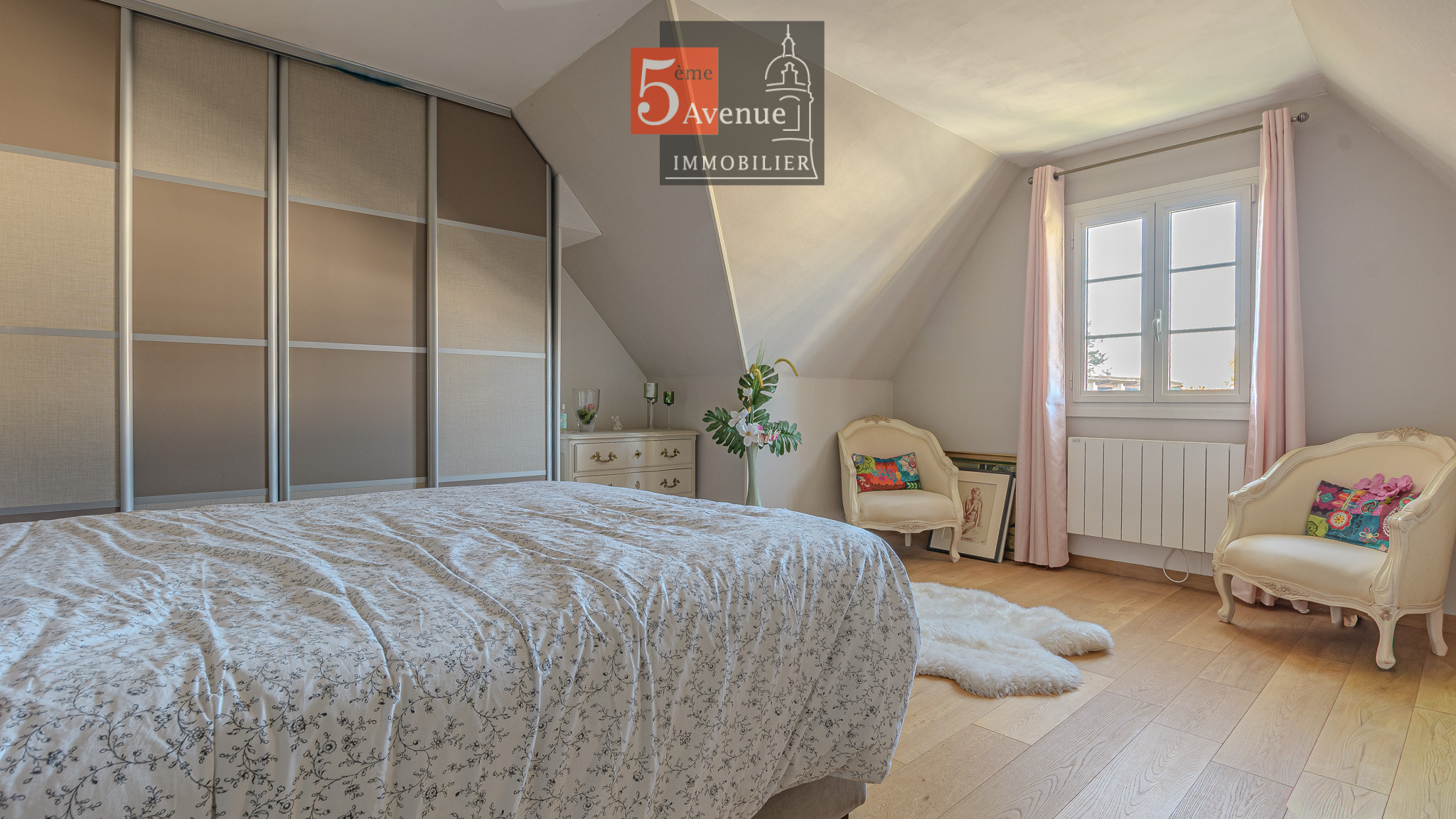À l’étage, l’espace nuit se compose de quatre chambres, dont une en enfilade offrant la possibilité de créer une très belle suite parentale, ainsi qu’une spacieuse salle de bains avec douche et baignoire.