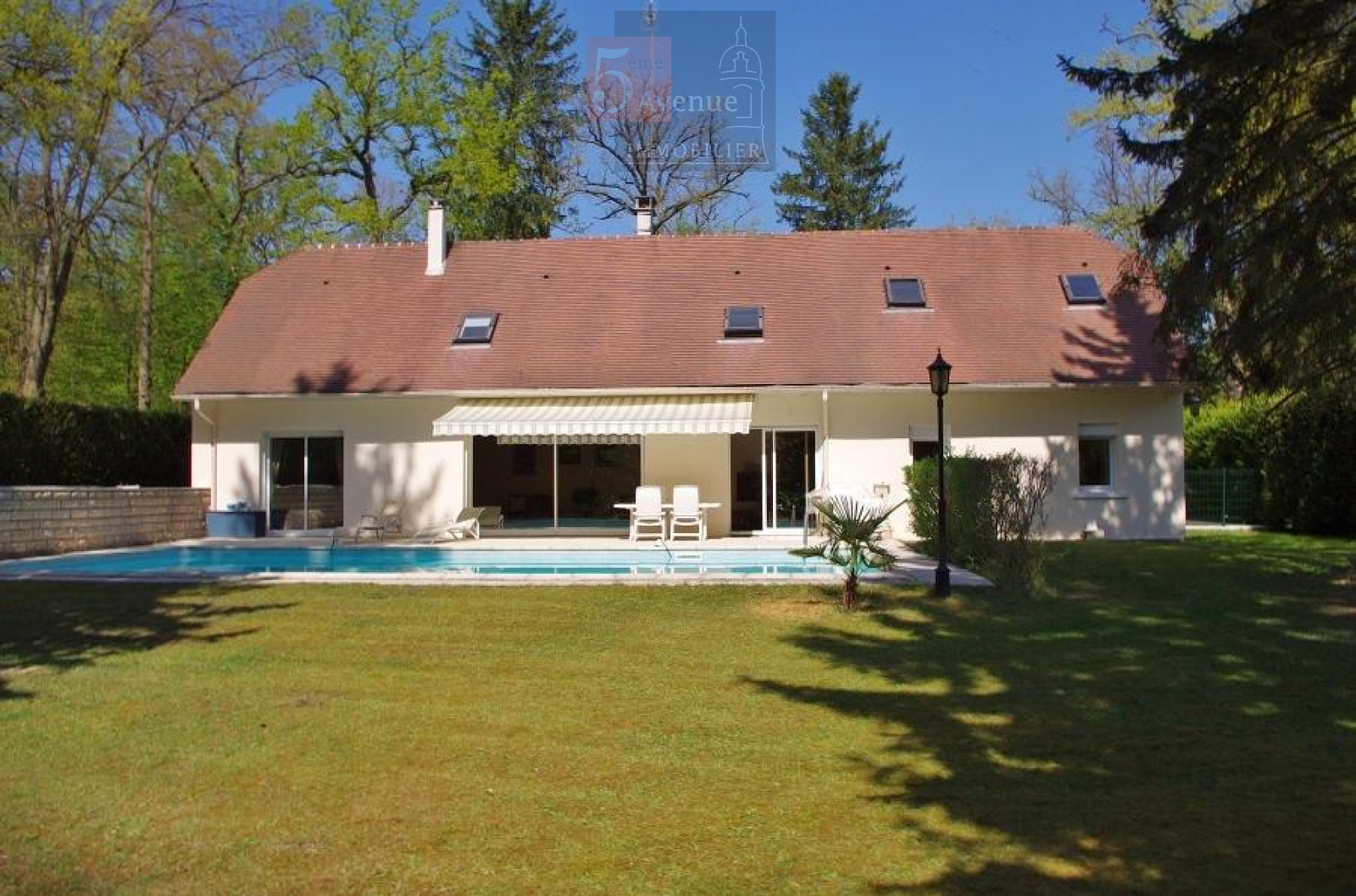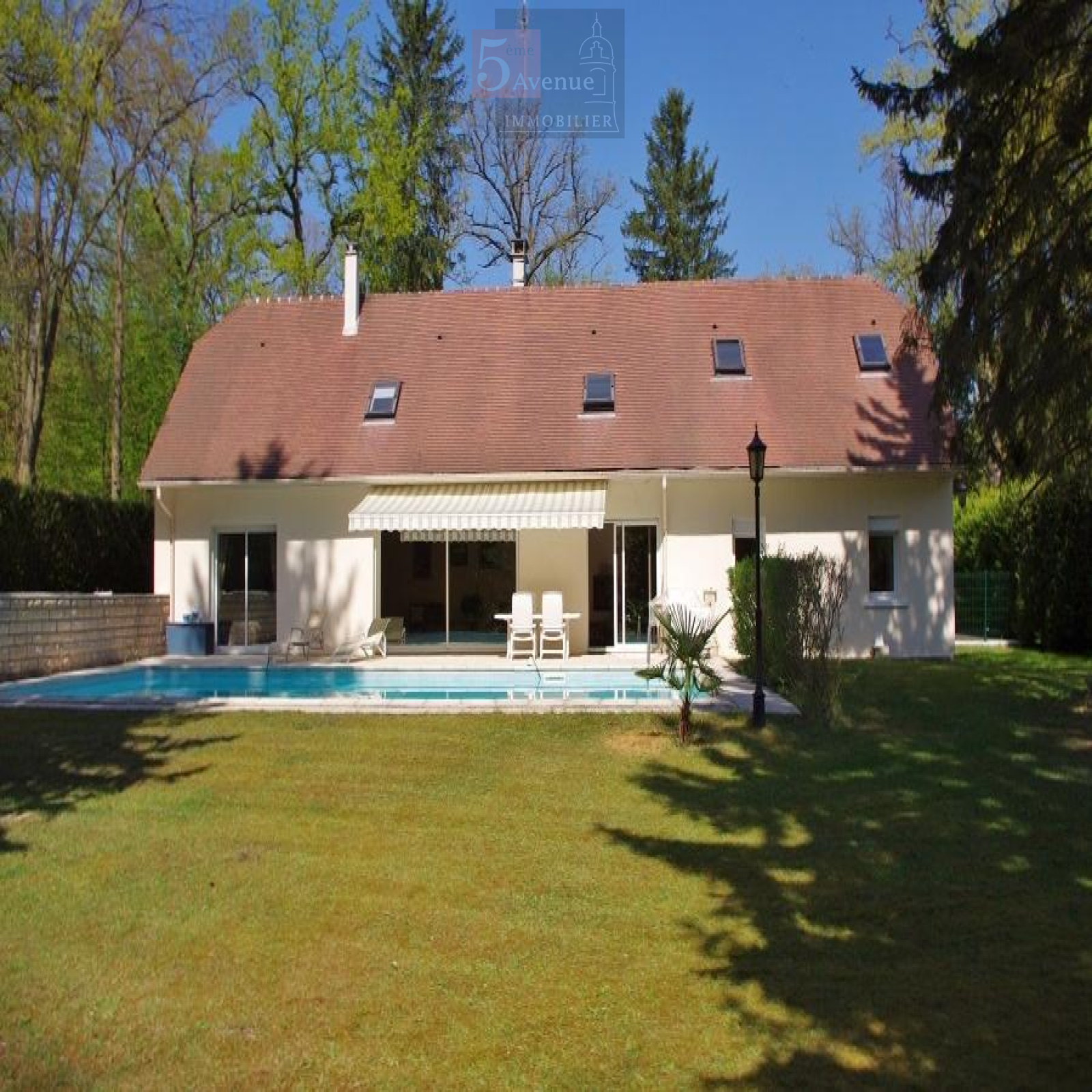 EXCLUSIVITE - Lamorlaye le Lys. Dans secteur résidentiel et calme, maison de 1983 de 200 M² en parfait état composée d'un hall d'entrée, grand séjour donnant sur la terrasse et la piscine, cuisine ouverte sur une salle à manger, deux chambres en rez-de-chaussée avec une salle d'eau. A l'étage, 3 Chambres et un bureau et une salle de bains. Sous sol partiel avec garage pour 3 véhicules et cave. Parc arboré de 3 865M².Grande baies vitrées. Idéal famille, à voir Rapidement, bel emplacement.