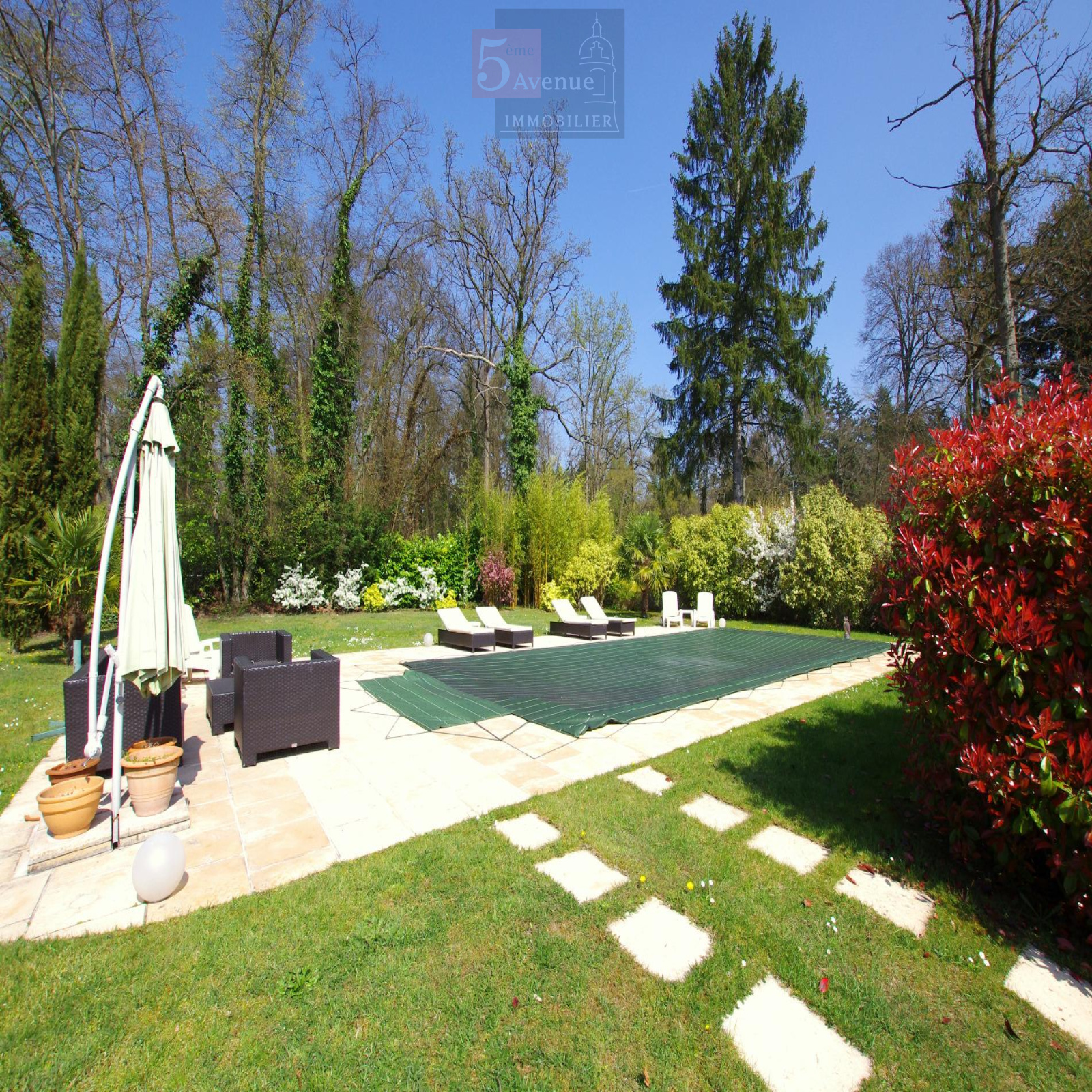 LAMORLAYE LE LYS. Ancien relais de chasse du début XIXème siècle, beaucoup de cachet, comprenant une entrée, un salon avec sa cheminée, belle salle à manger indépendante, cuisine équipée, 2 salles de bains, 3 belles chambres. A l'étage une chambre avec son balcon, une salle d'eau et un bureau. Très beau terrain de 2 300m² arboré et bel espace avec grande terrasse et piscine chauffée. Maison située dans un domaine privilégié, à 5km de la gare de Chantilly avec accès direct Paris gare du nord en 25min, accès au centre ville en 15mn à pieds