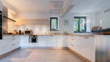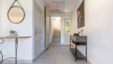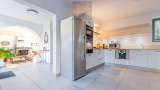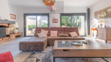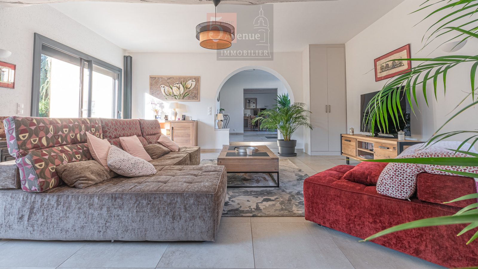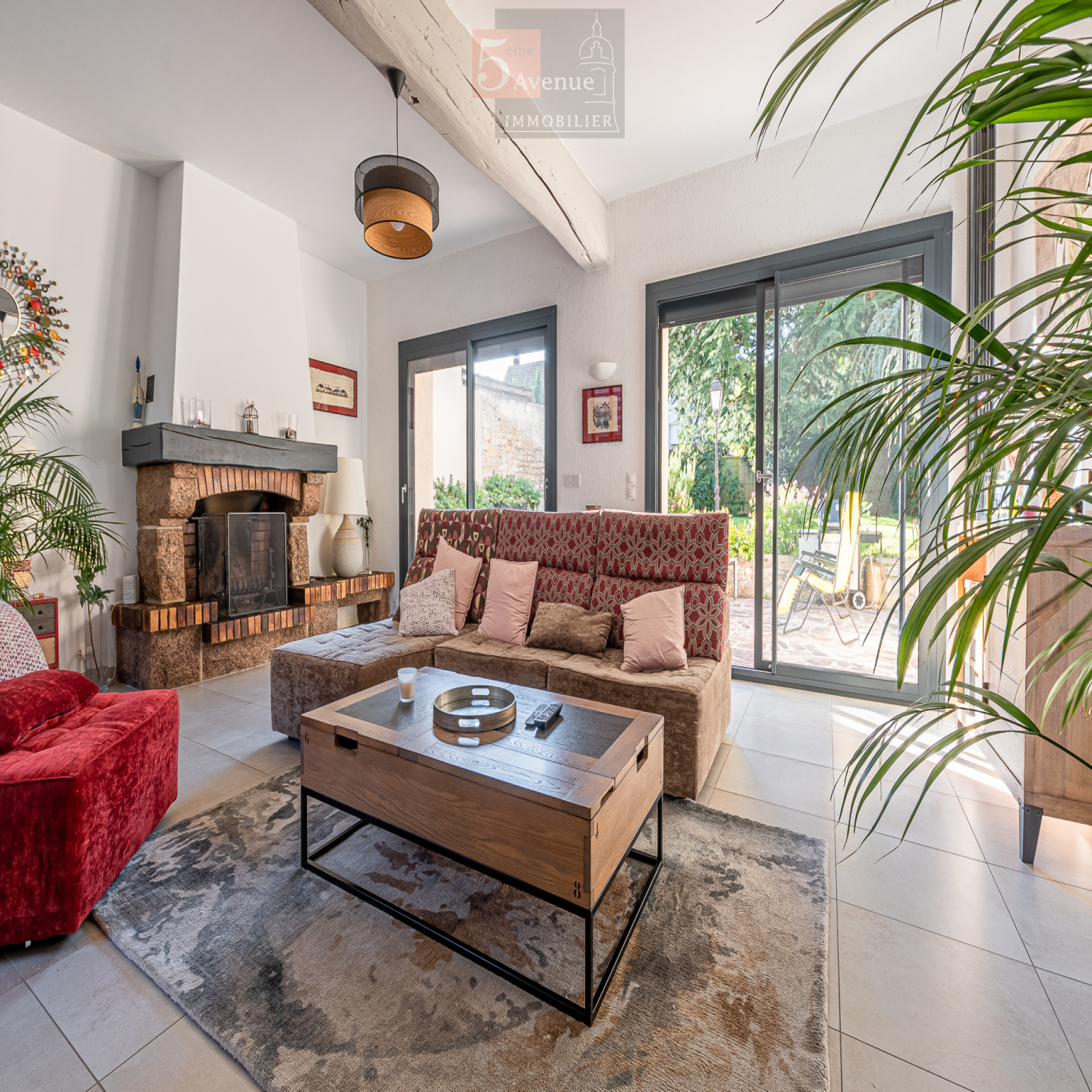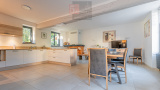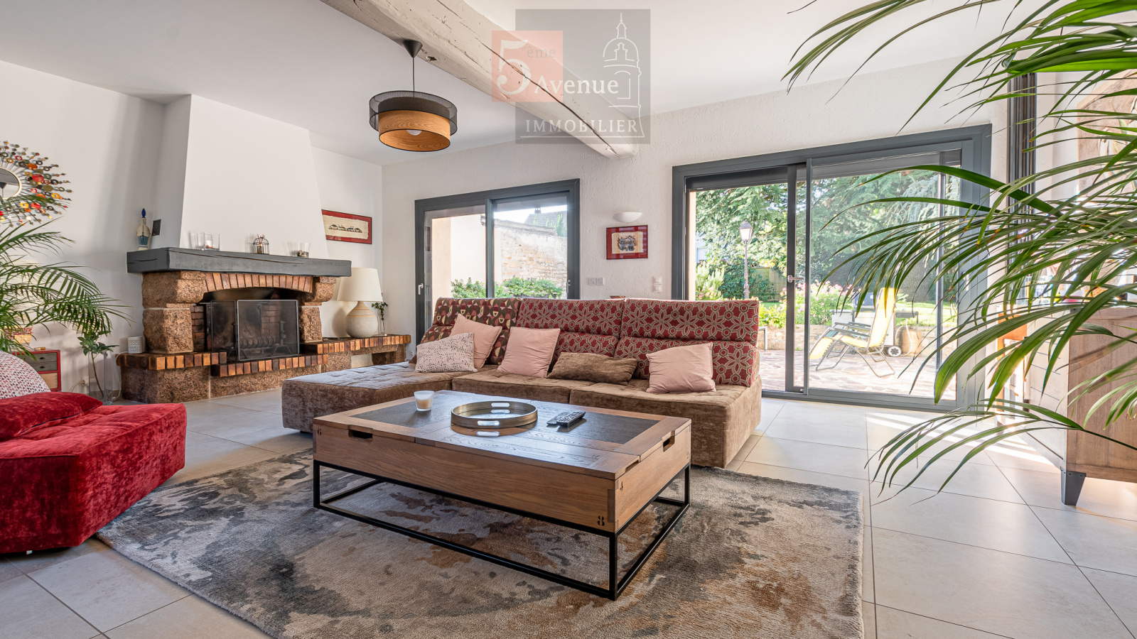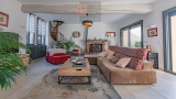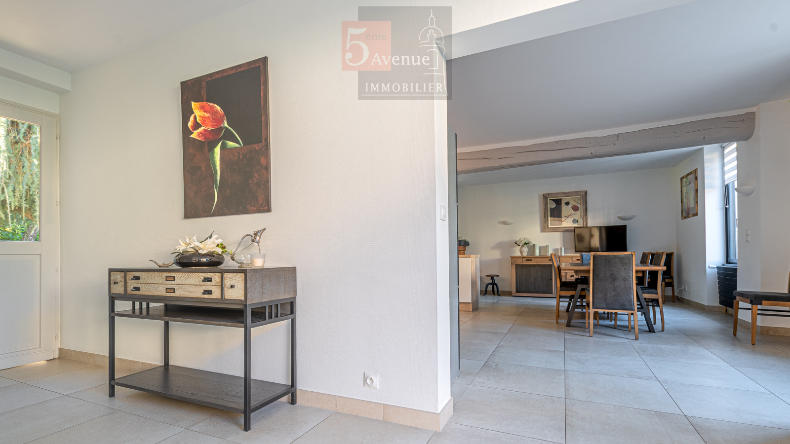 La maison se compose d’une entrée donnant sur un vaste salon ou les grandes baies vitrées donnent accès à une terrasse et le jardin (plein ouest) ainsi qu'à une large cuisine équipée d’éléments modernes et la salle à manger