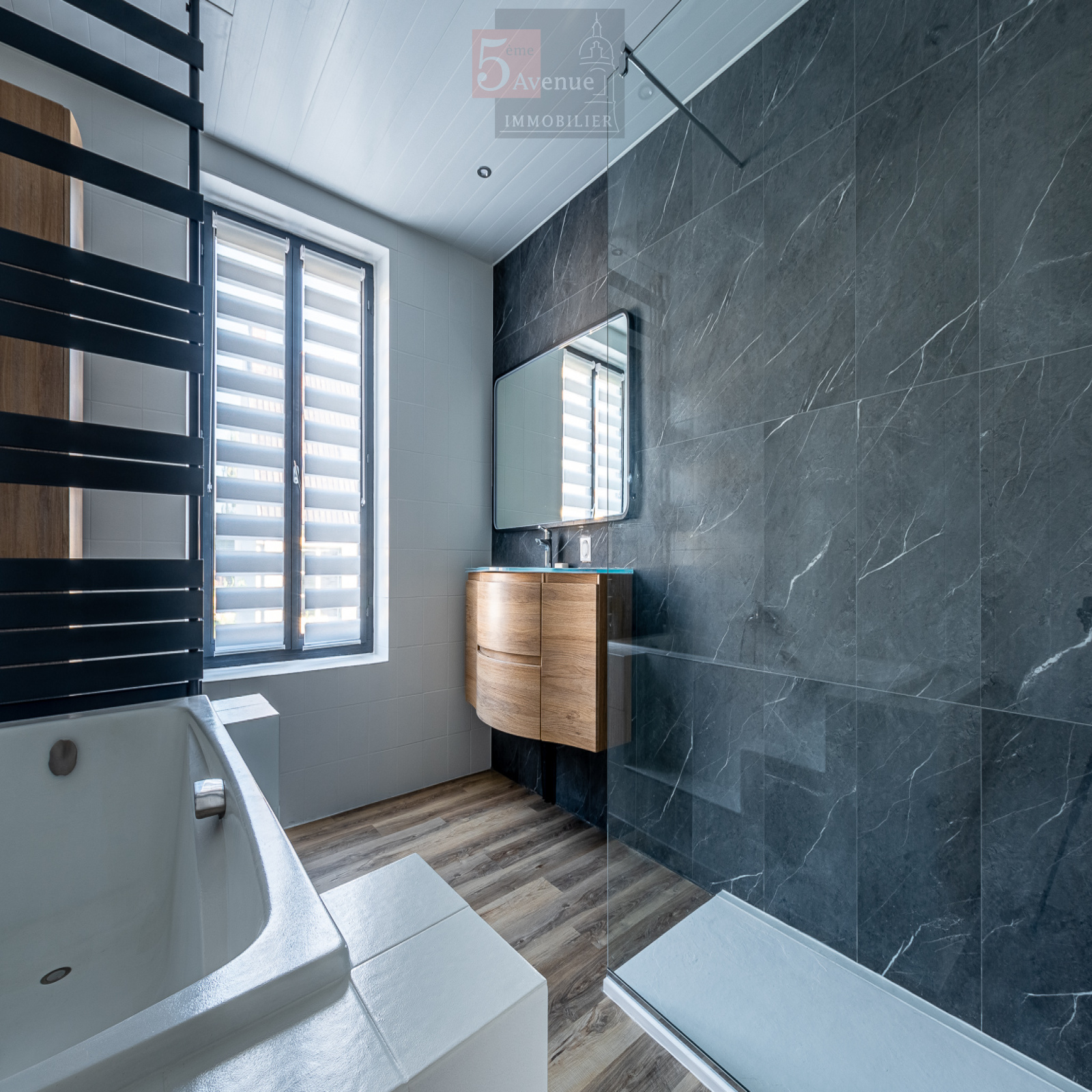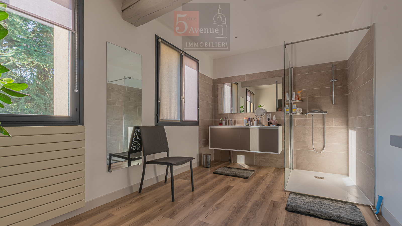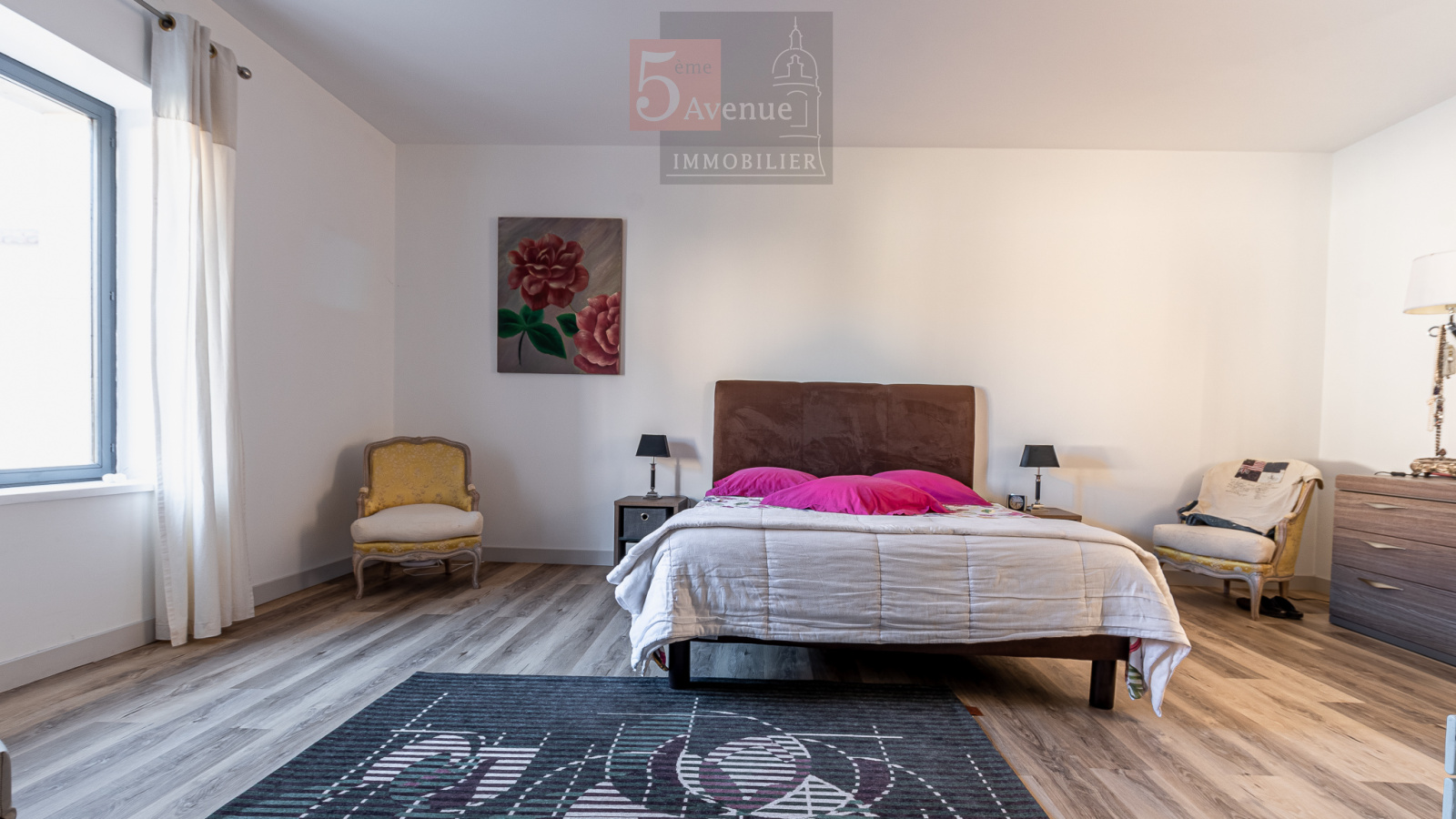 L'escalier vous amène à l'étage où l'on retrouve d’un côté, une grande suite parentale composée de trois pièces dont une grande chambre et une vaste salle d'eau. Une belle salle de bains et deux autres chambres complètent ce niveau dont une avec un accès à deux pièces en étage.