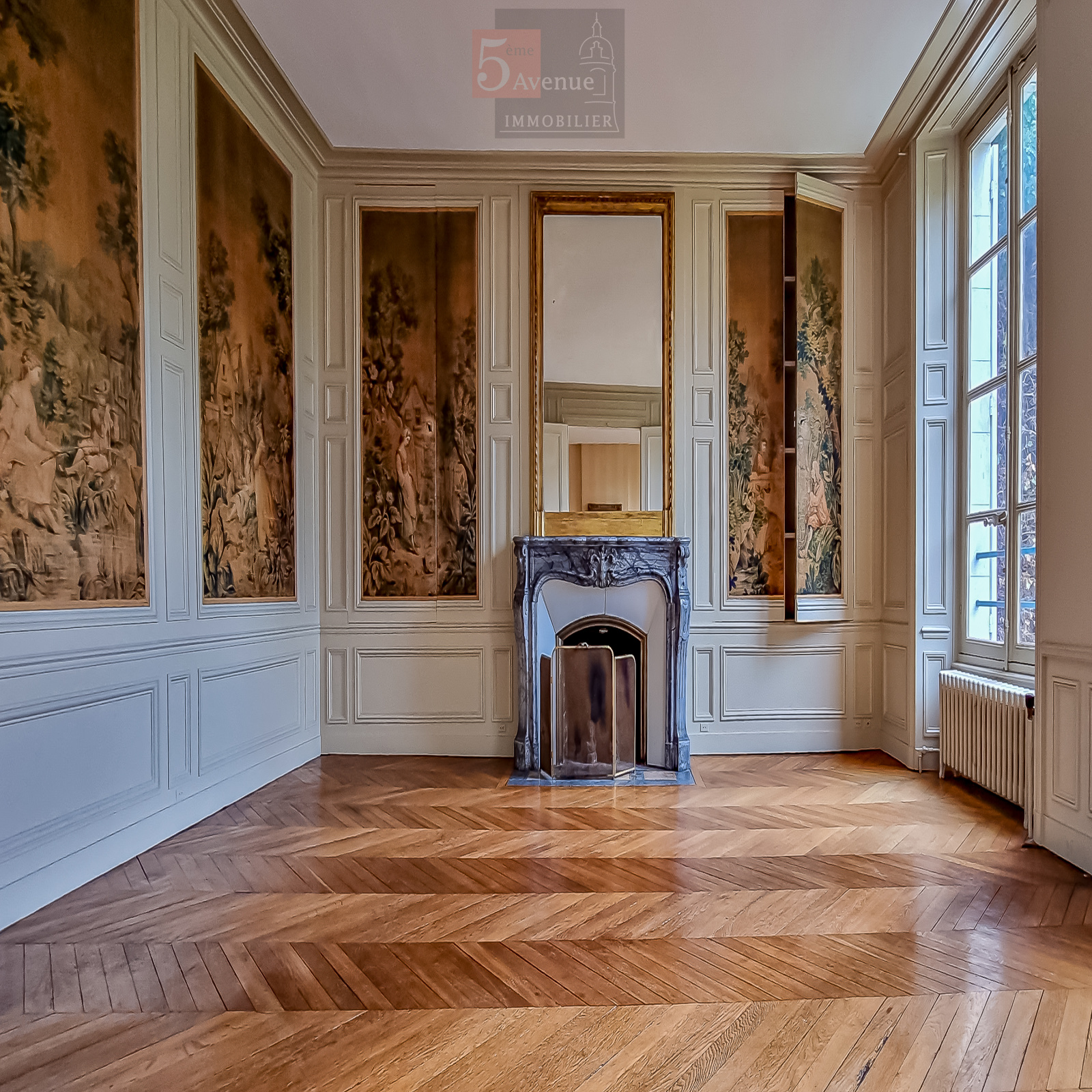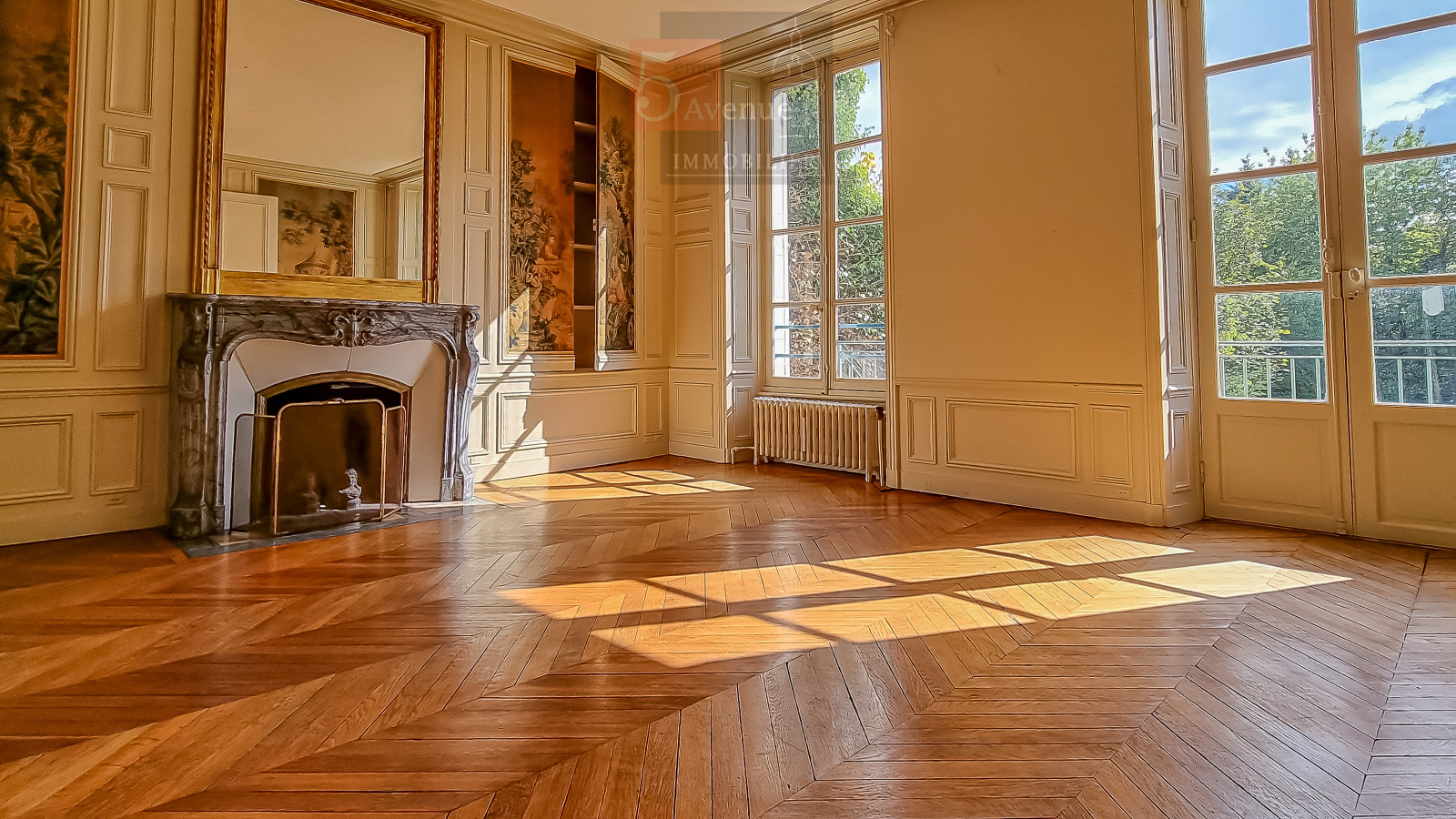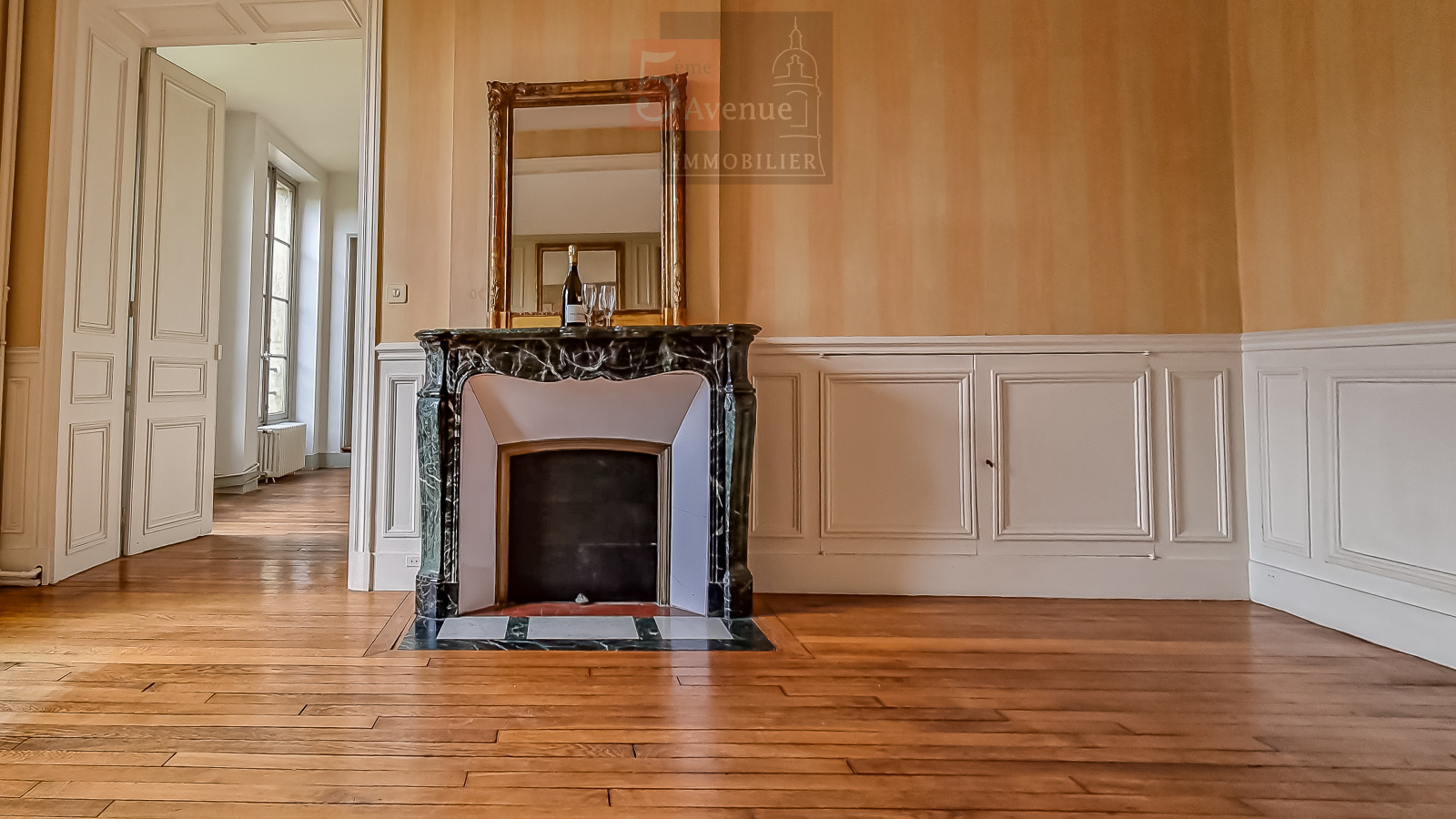 Le hall d'entrée nous amène à un double séjour-salle à manger lumineux, par ses nombreuses ouvertures (parquet ancien, cheminées un cadre agréable et une ambiance cosy), dans la continuité un petit salon et la cuisine.