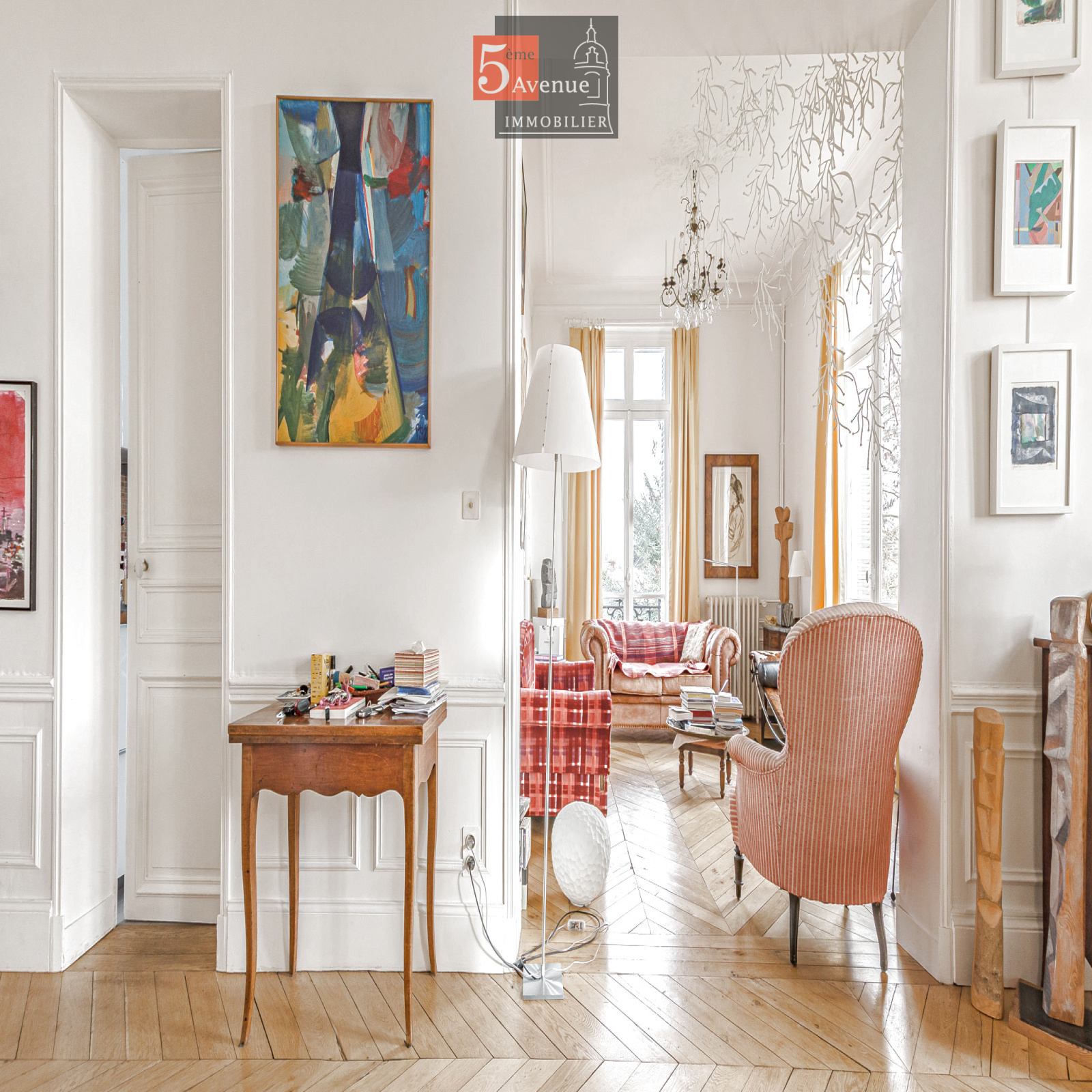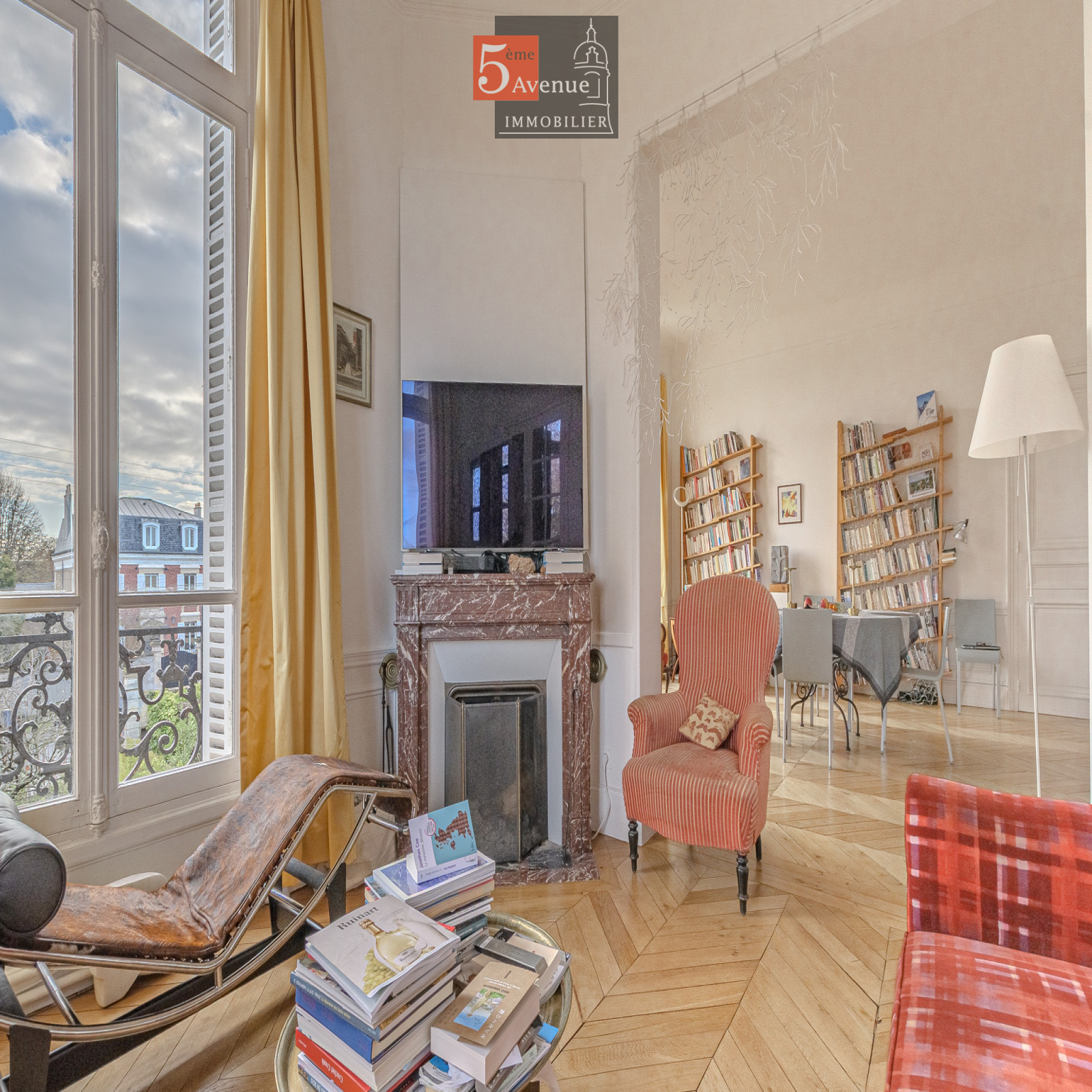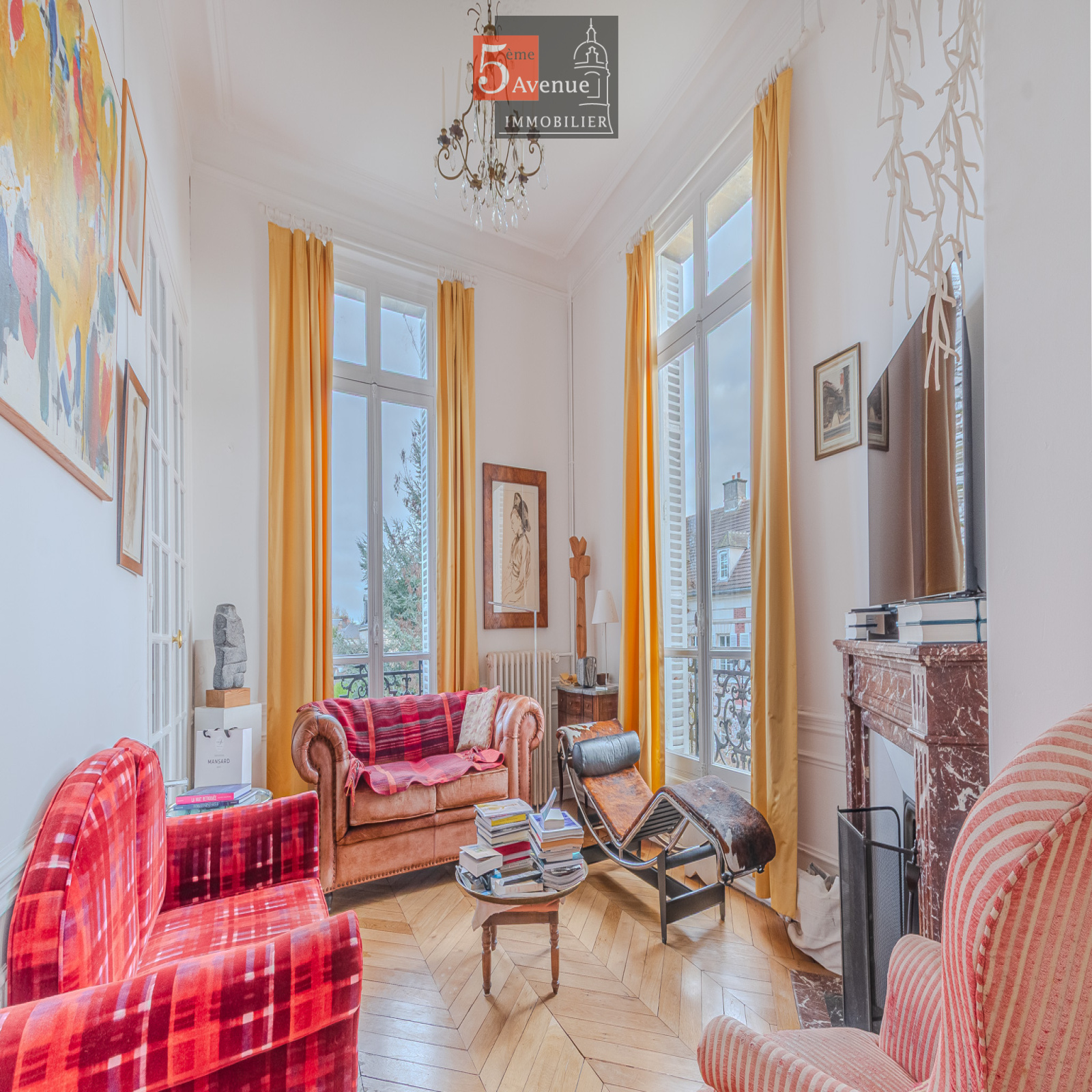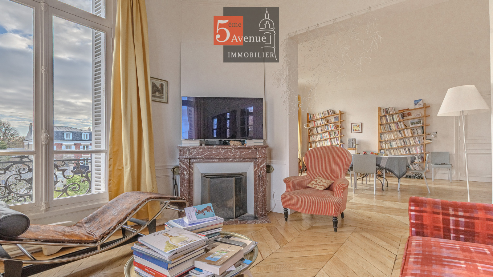 On y retrouve tous les codes de l'ancien : moulures, parquet en chêne, hauteur sous plafond et une cheminée fonctionnelle apportant un charme authentique à l’ensemble.