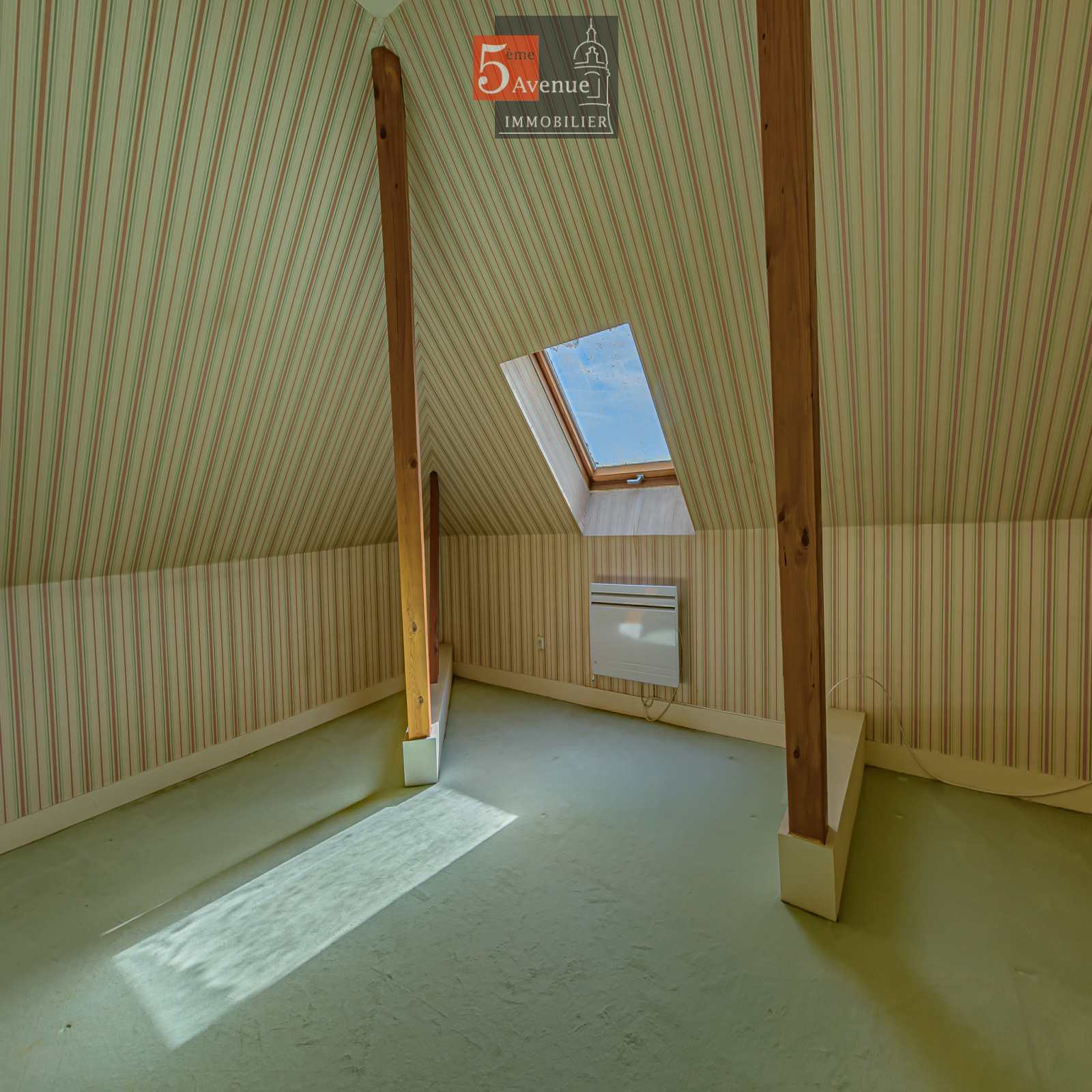 À l’étage, une seconde chambre d’environ 29 m² au sol permet un espace nuit complémentaire. Une salle d’eau et un wc indépendant complètent ce niveau, permettant une organisation en duplex avec une séparation des espaces.
