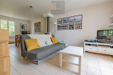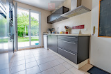 Entrée donnant sur un double séjour de 35m² avec un poêle à bois et accès sur une terrasse, cuisine récente de 11m² avec une arrière cuisine et un espace buanderie.
