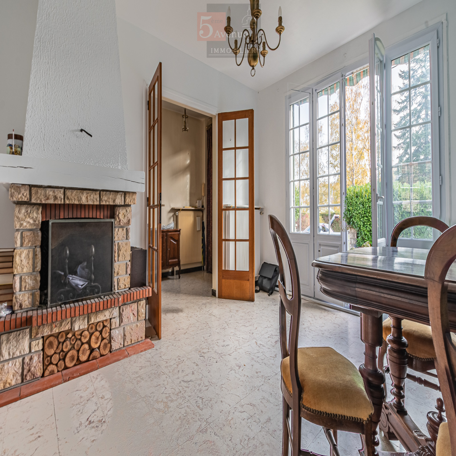 Très beau potentiel pour cette maison à remettre en valeur. L'entrée dessert un double séjour avec cheminée ainsi qu'une cuisine indépendante et équipée