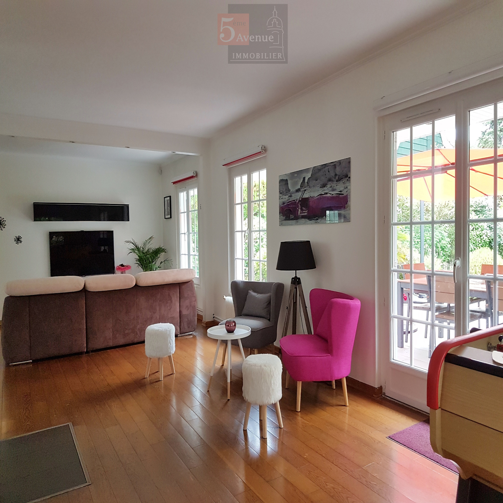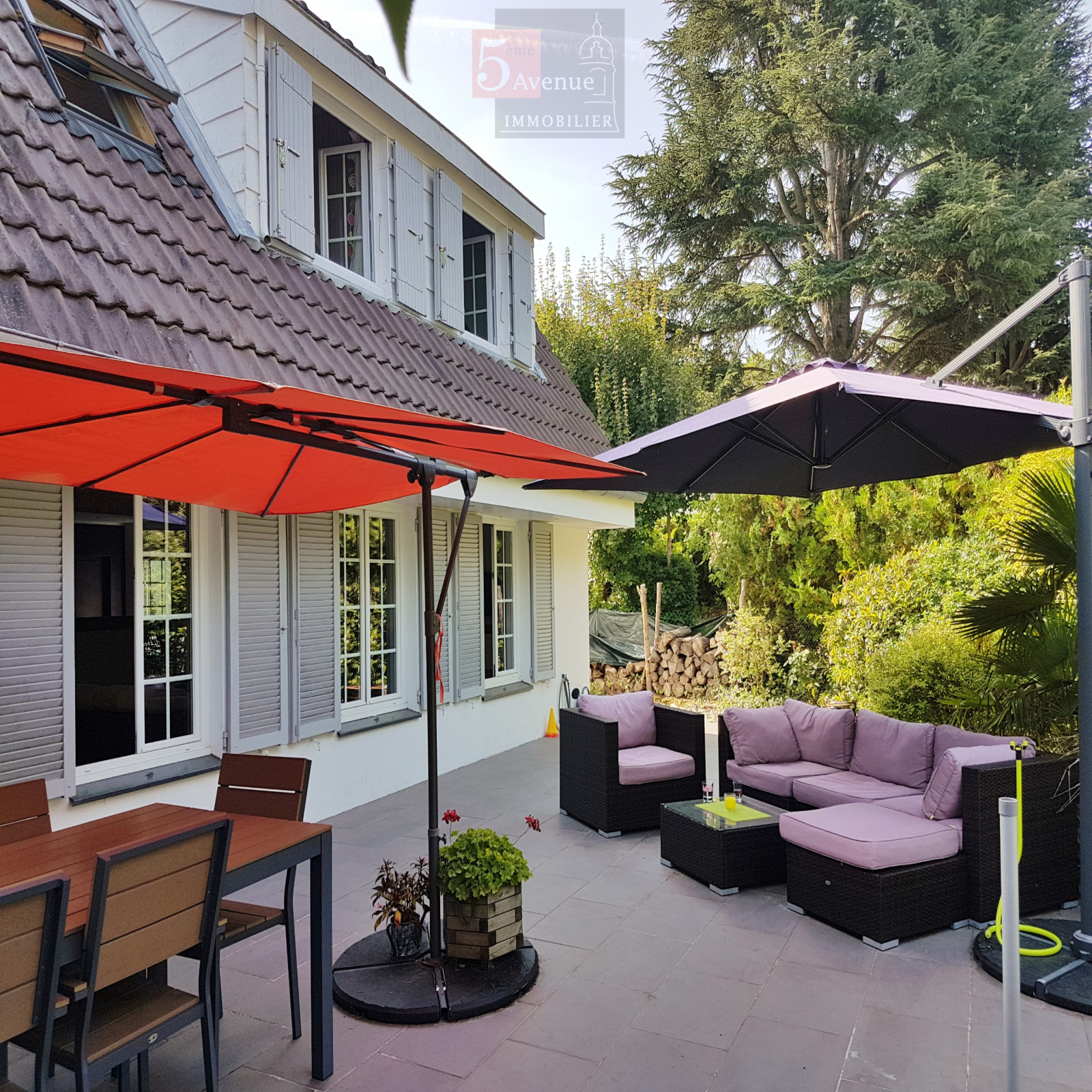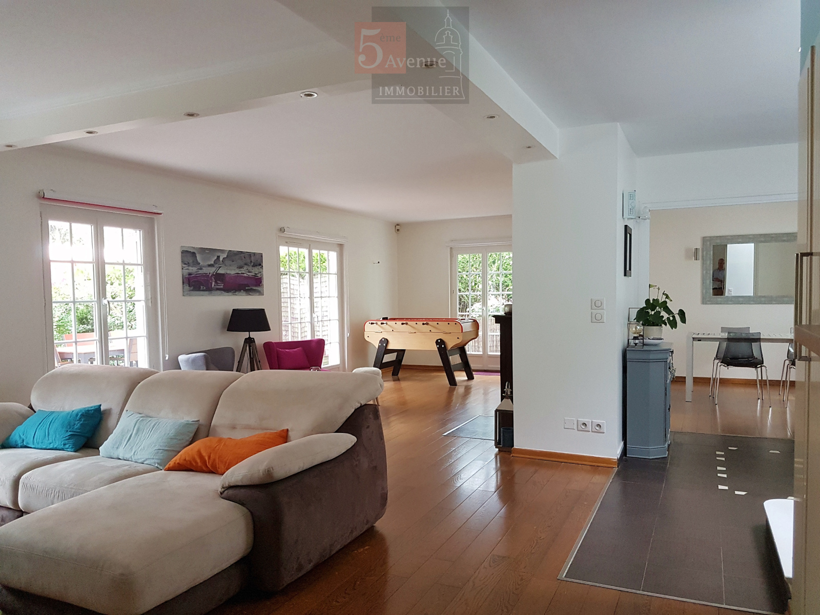 Coye la Forêt- Grande maison familiale de 227m², comprenant au rez de chaussée entrée, double séjour avec cheminée (50m²) donnant sur la terrasse et le jardin clos (800m²), cuisine équipée, chambre, salle d'eau. A l'étage 4 chambres dont une suite parentale avec baignoire et douche. Garage avec buanderie, abri clos. Entièrement rénovée (huisseries, électricité, plomberie et chauffage neuf). Cette maison lumineuse offre un très beau volume général.
