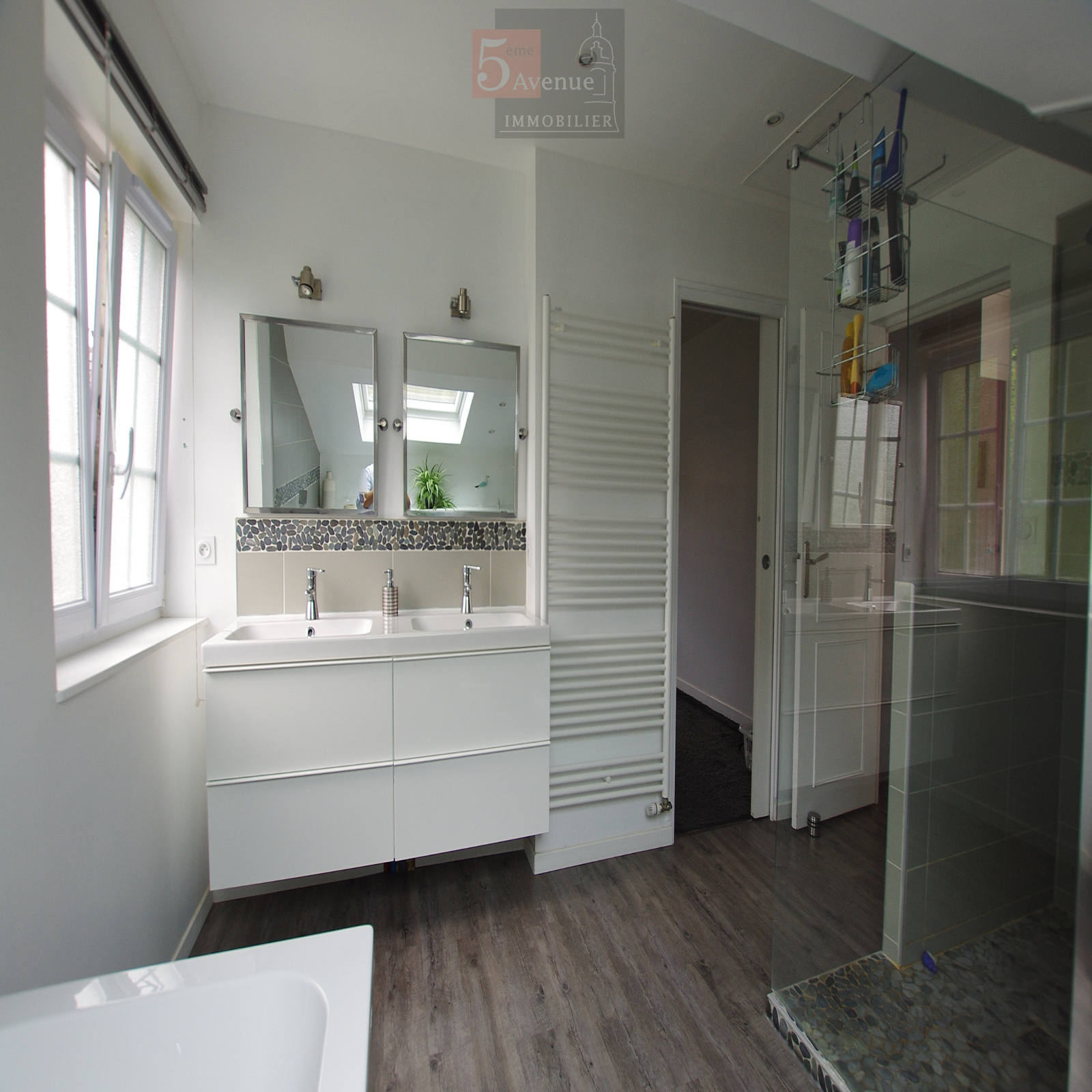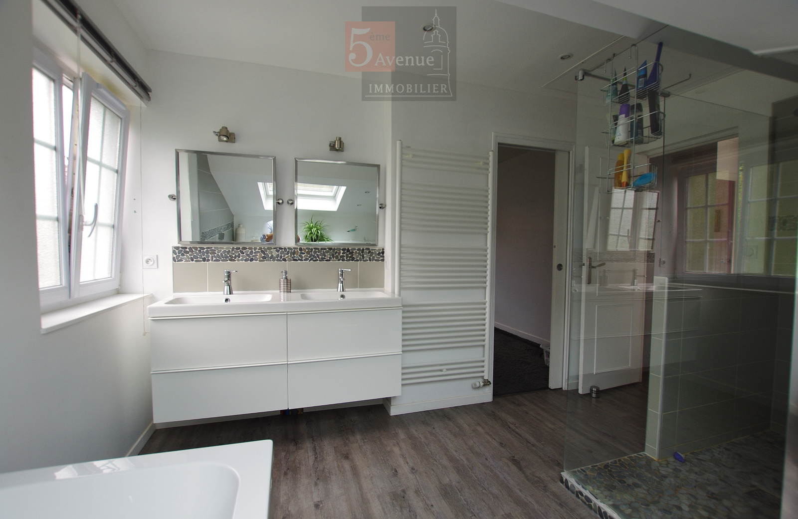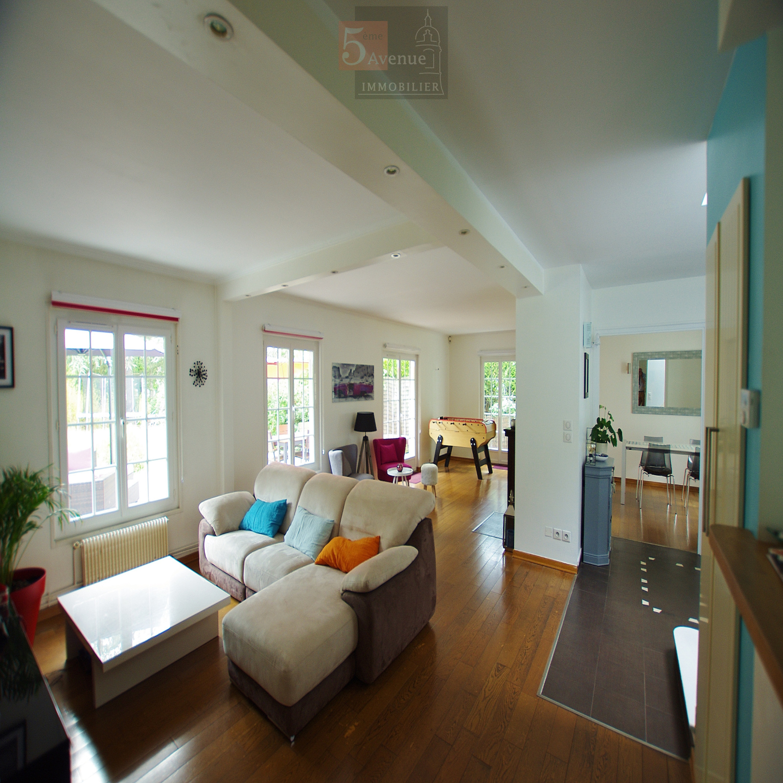 Coye la Forêt- Grande maison familiale de 227m², comprenant au rez de chaussée entrée, double séjour avec cheminée (50m²) donnant sur la terrasse et le jardin clos (800m²), cuisine équipée, chambre, salle d'eau. A l'étage 4 chambres dont une suite parentale avec baignoire et douche. Garage avec buanderie, abri clos. Entièrement rénovée (huisseries, électricité, plomberie et chauffage neuf). Cette maison lumineuse offre un très beau volume général.