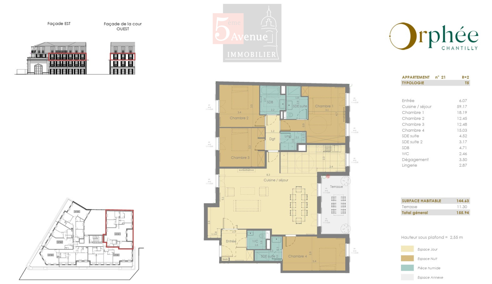Appartement 5 pièce(s) 4 chambre(s) 145 m²